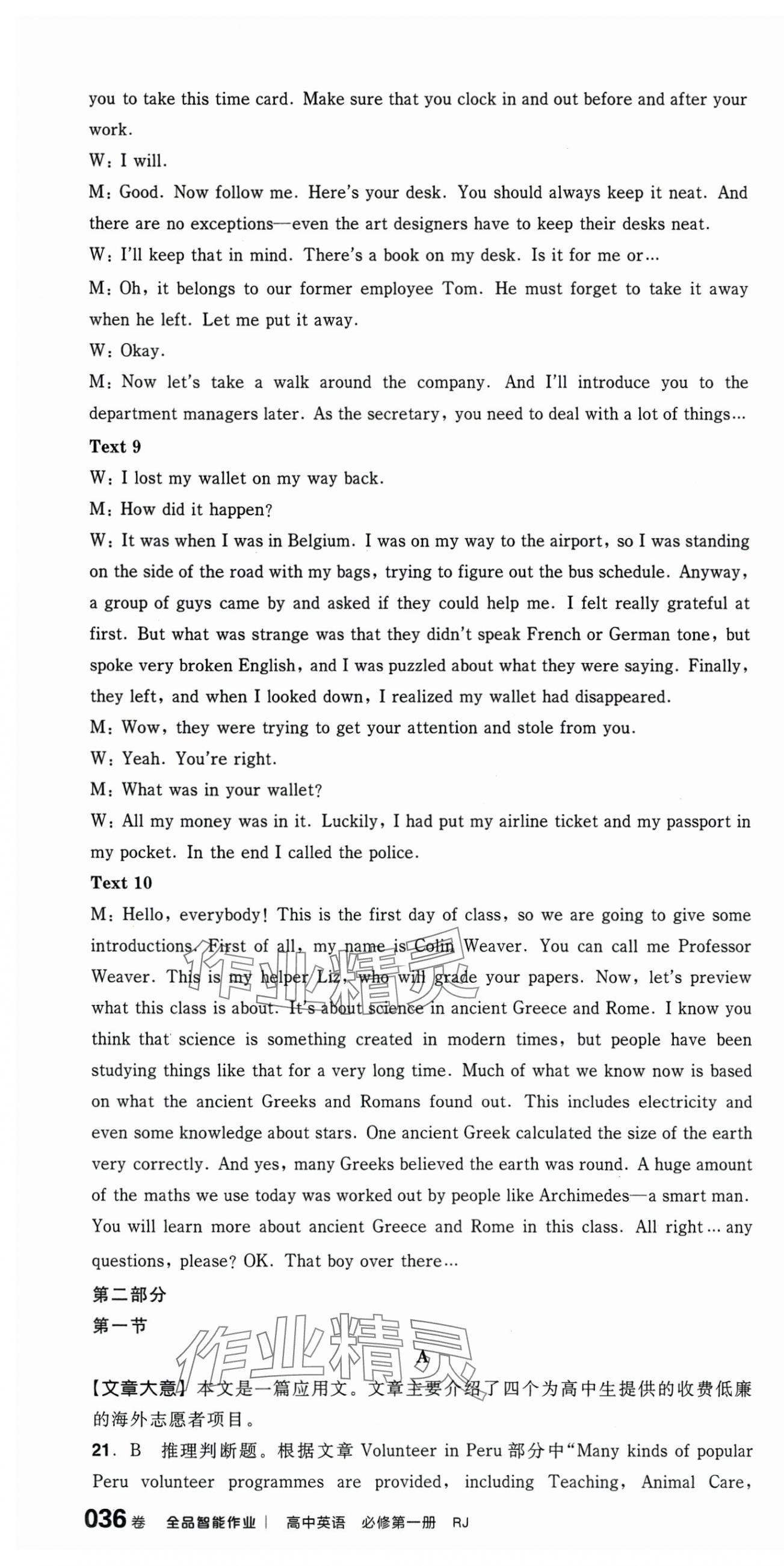 注:目前有些书本章节名称可能整理的还不是很完善,但都是按照顺序排列的,请同学们按照顺序仔细查找。练习册 2025年全品智能作业高中英语必修第一册人教版 答案主要是用来给同学们做完题方便对答案用的,请勿直接抄袭。