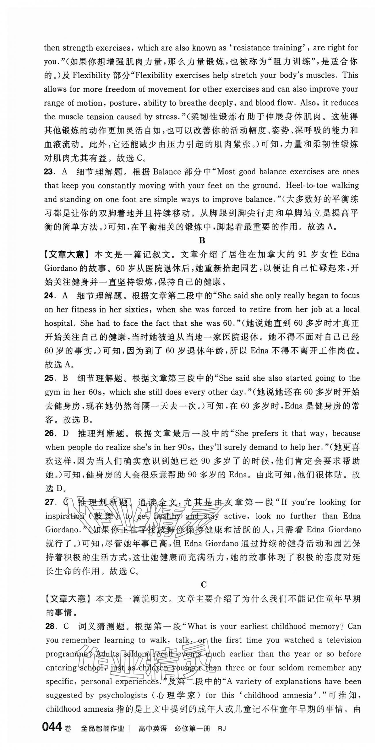 注:目前有些书本章节名称可能整理的还不是很完善,但都是按照顺序排列的,请同学们按照顺序仔细查找。练习册 2025年全品智能作业高中英语必修第一册人教版 答案主要是用来给同学们做完题方便对答案用的,请勿直接抄袭。
