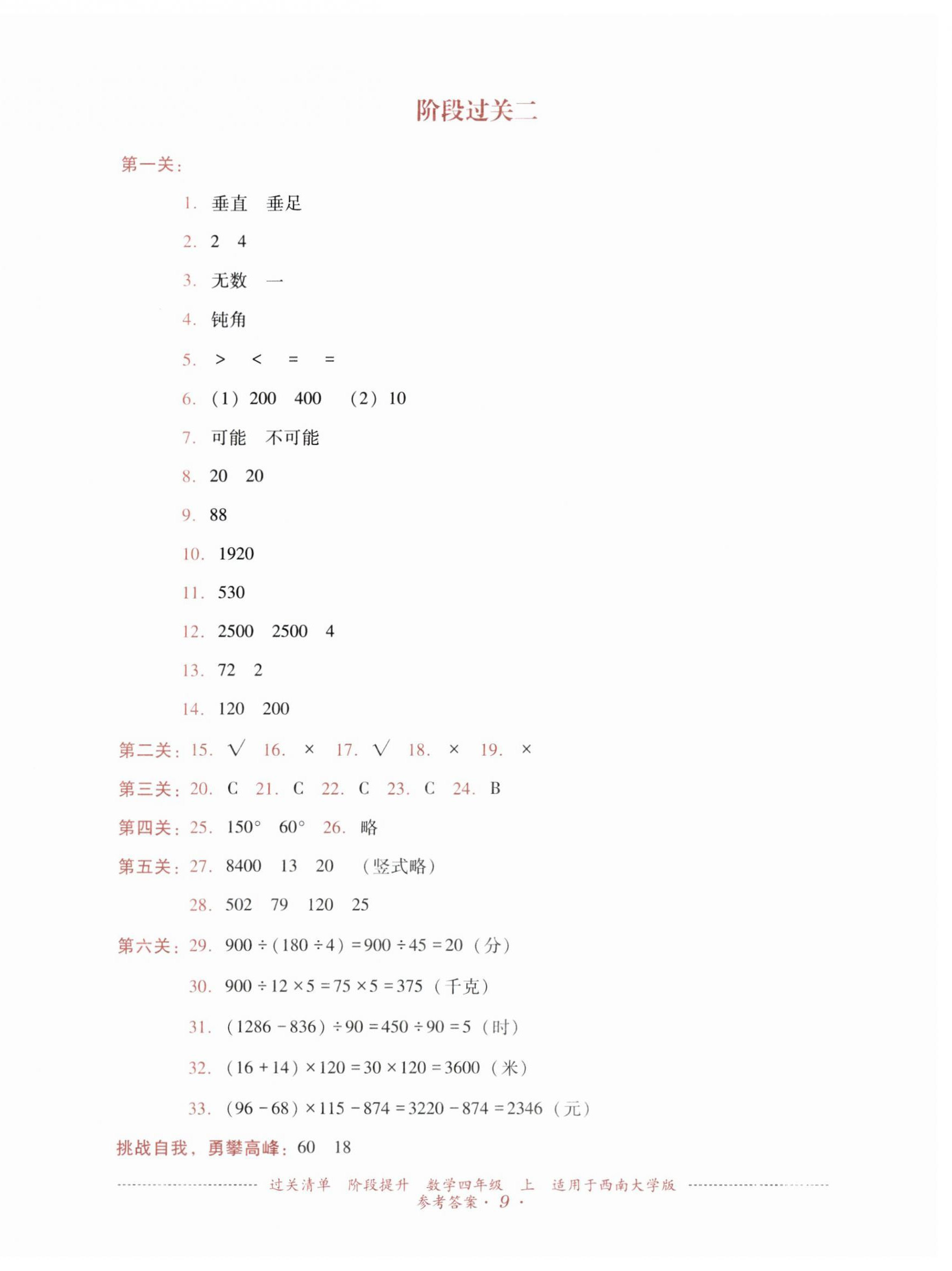 注:目前有些书本章节名称可能整理的还不是很完善,但都是按照顺序排列的,请同学们按照顺序仔细查找。练习册 2025年过关清单四川教育出版社四年级数学上册西师大版 答案主要是用来给同学们做完题方便对答案用的,请勿直接抄袭。