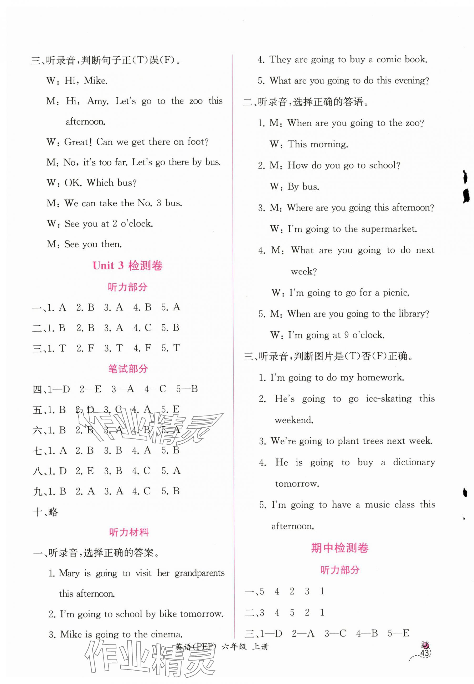 注:目前有些书本章节名称可能整理的还不是很完善,但都是按照顺序排列的,请同学们按照顺序仔细查找。练习册 2025年课时练人民教育出版社六年级英语上册人教版 答案主要是用来给同学们做完题方便对答案用的,请勿直接抄袭。