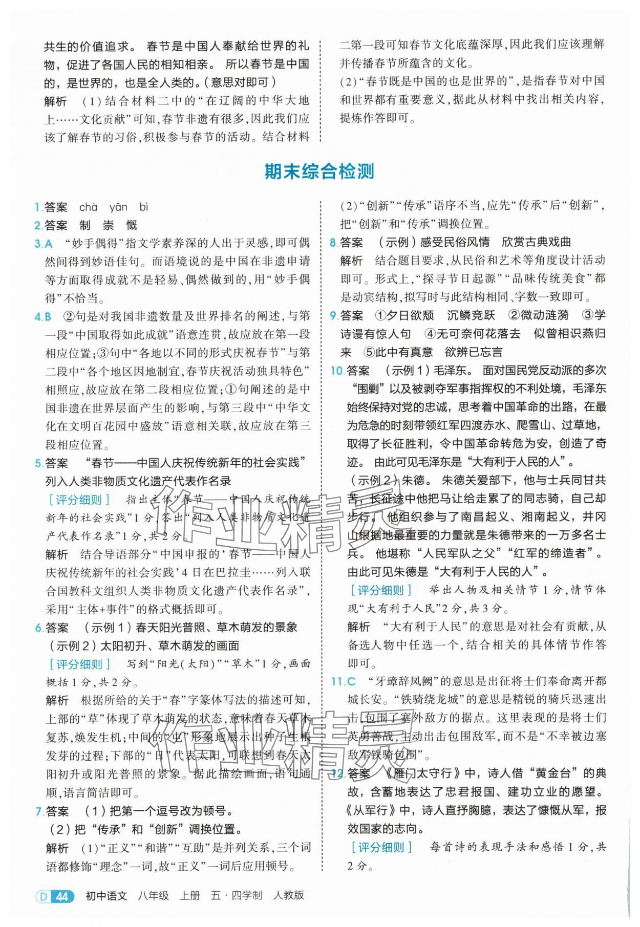 注:目前有些书本章节名称可能整理的还不是很完善,但都是按照顺序排列的,请同学们按照顺序仔细查找。练习册 2025年5年中考3年模拟八年级语文上册人教版五四制山东专版 答案主要是用来给同学们做完题方便对答案用的,请勿直接抄袭。