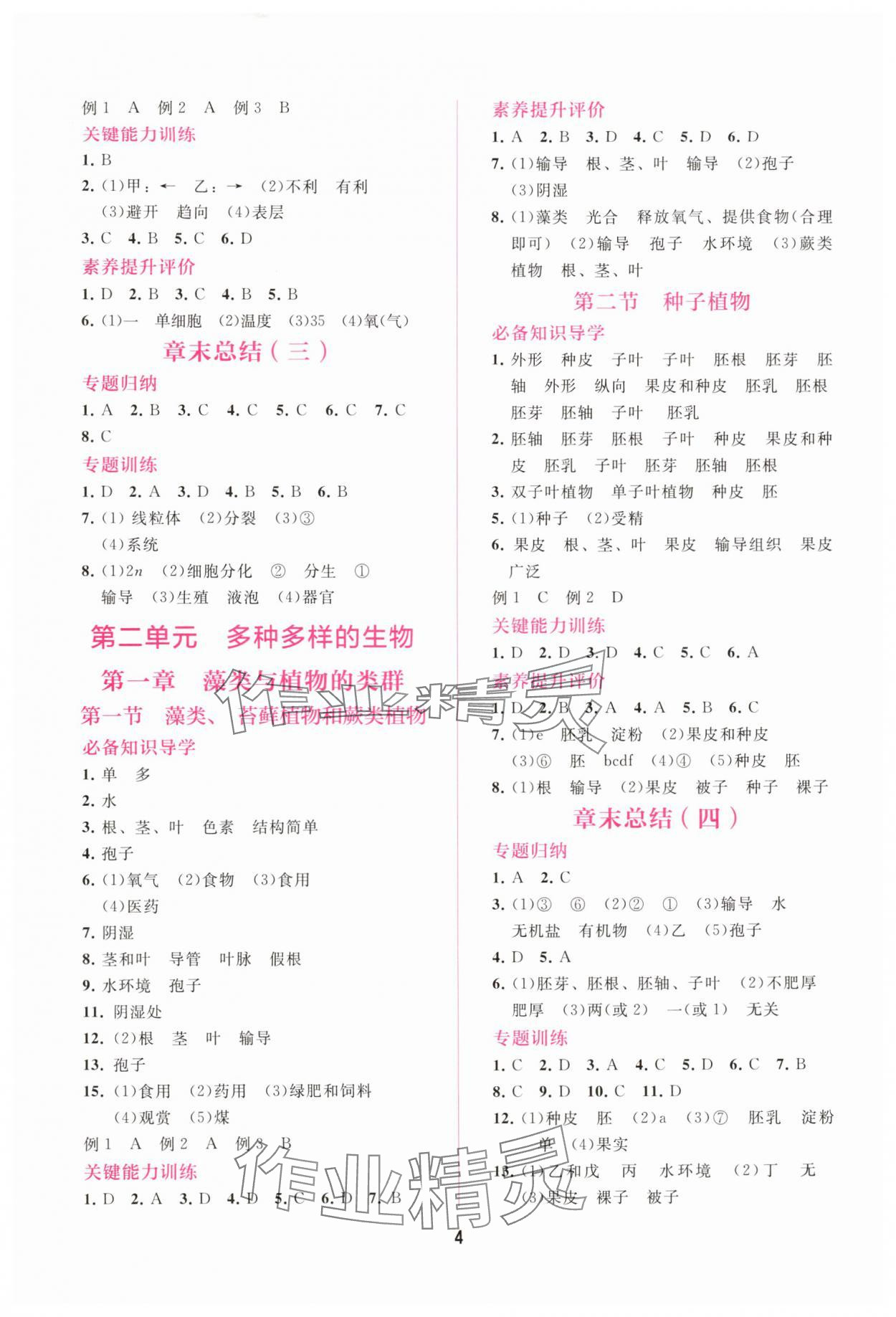 注:目前有些书本章节名称可能整理的还不是很完善,但都是按照顺序排列的,请同学们按照顺序仔细查找。练习册 2025年新课程学习辅导七年级生物上册人教版 答案主要是用来给同学们做完题方便对答案用的,请勿直接抄袭。