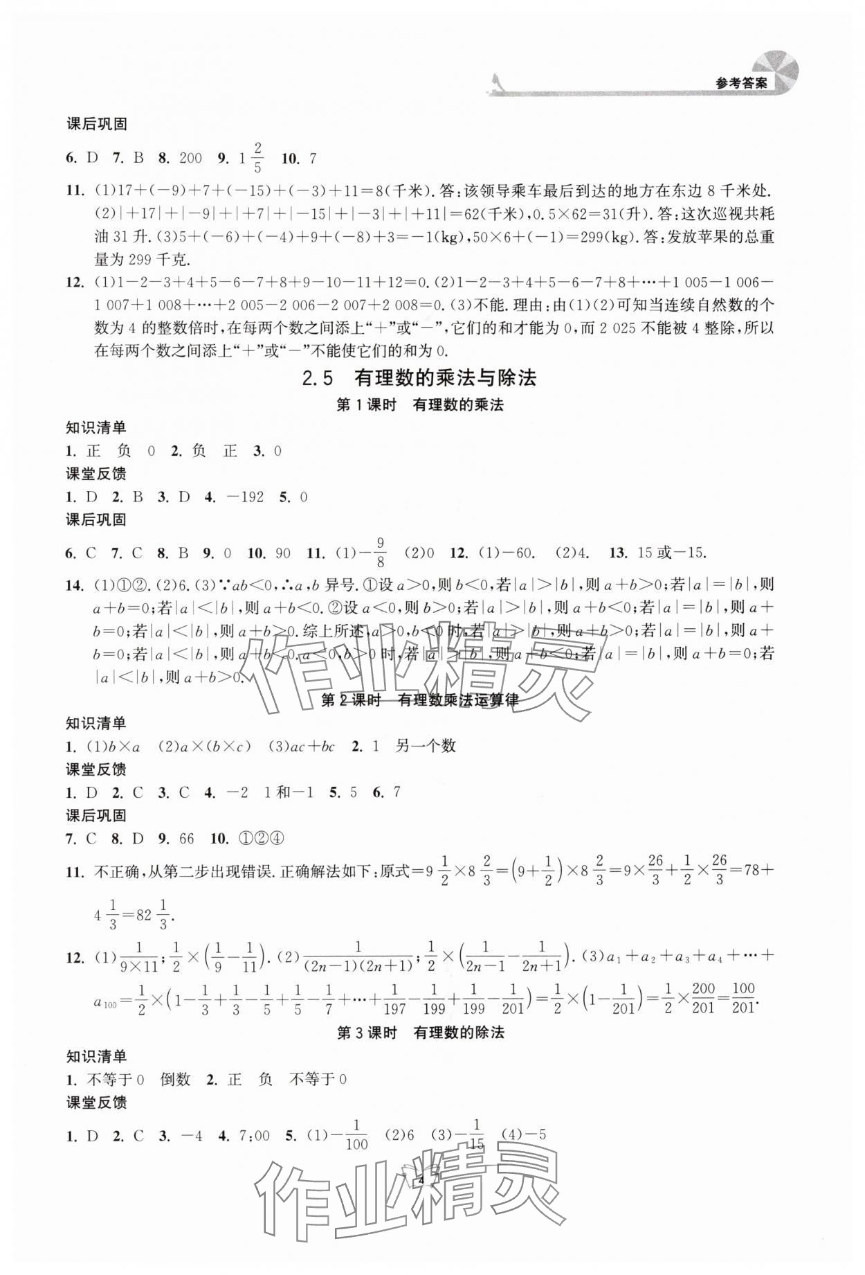 2025年创新课时作业本江苏凤凰少年儿童出版社七年级数学上册苏科版 参考答案第4页
