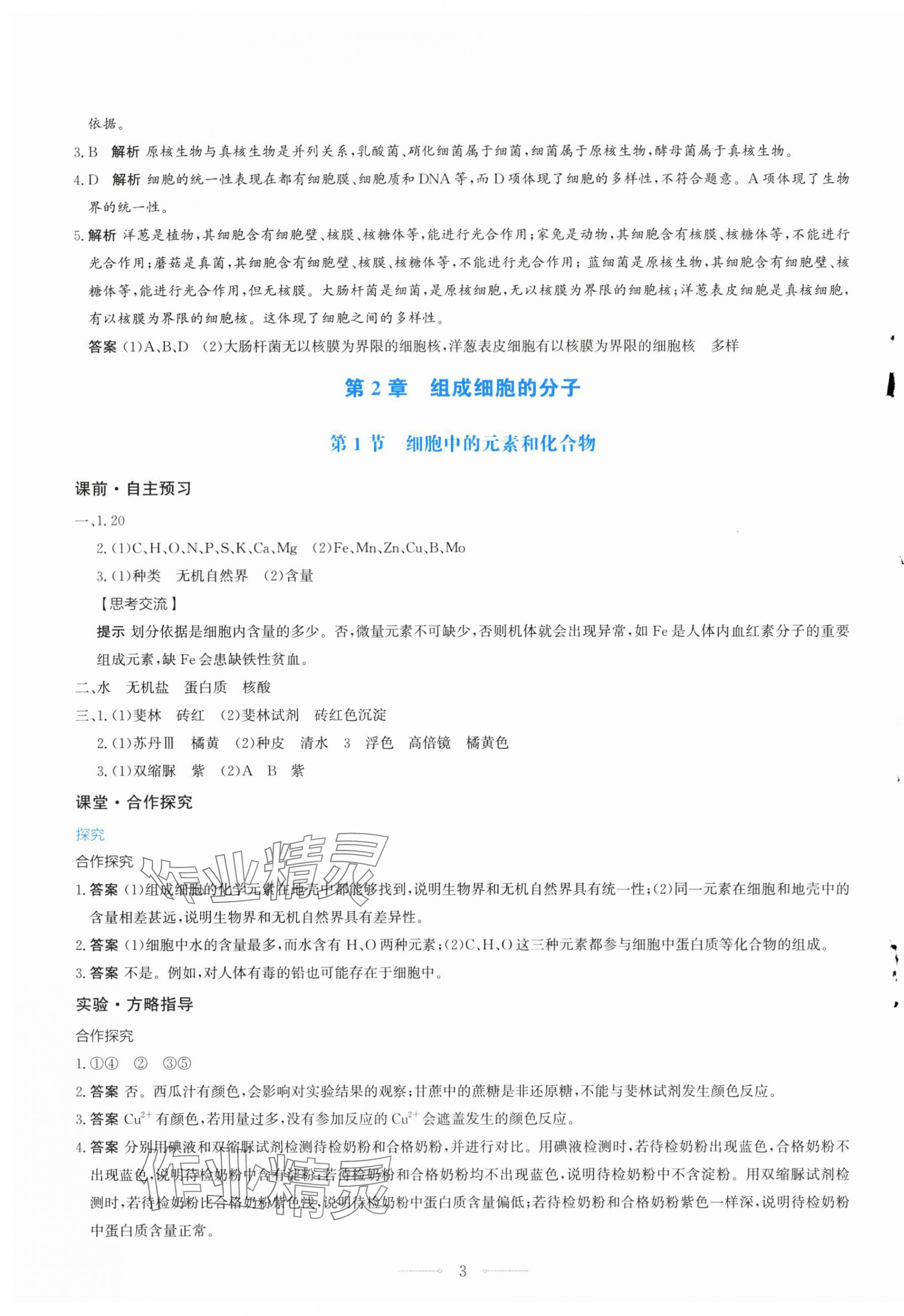 注:目前有些书本章节名称可能整理的还不是很完善,但都是按照顺序排列的,请同学们按照顺序仔细查找。练习册2025年阳光课堂生物必修一分子与细胞人教版福建专版人民教育出版社答案主要是用来给同学们做完题方便对答案用的,请勿直接抄袭。