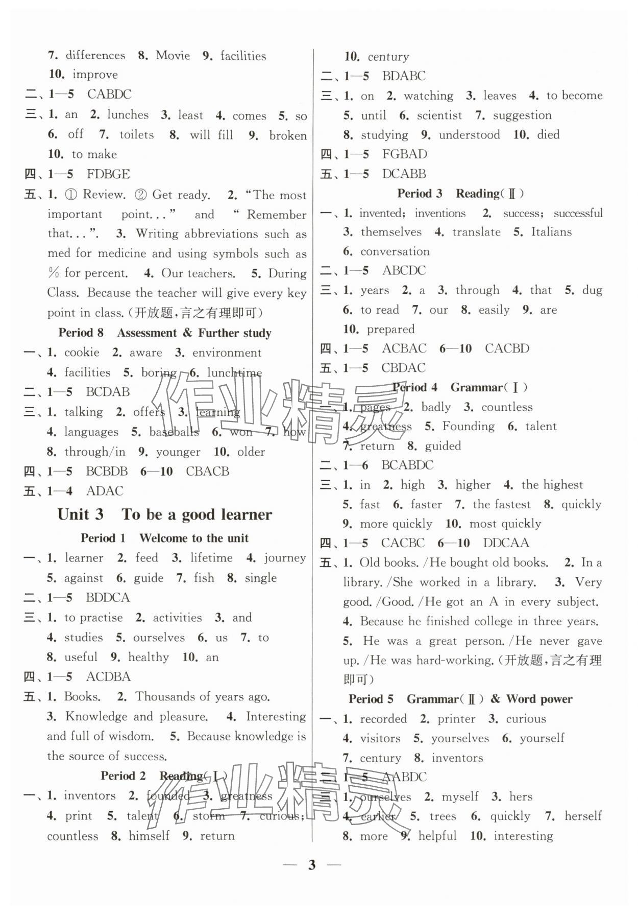 精英家教网> 2025年创新课时作业本八年级英语上册译林版宿迁专版 > 第3页 参考答案