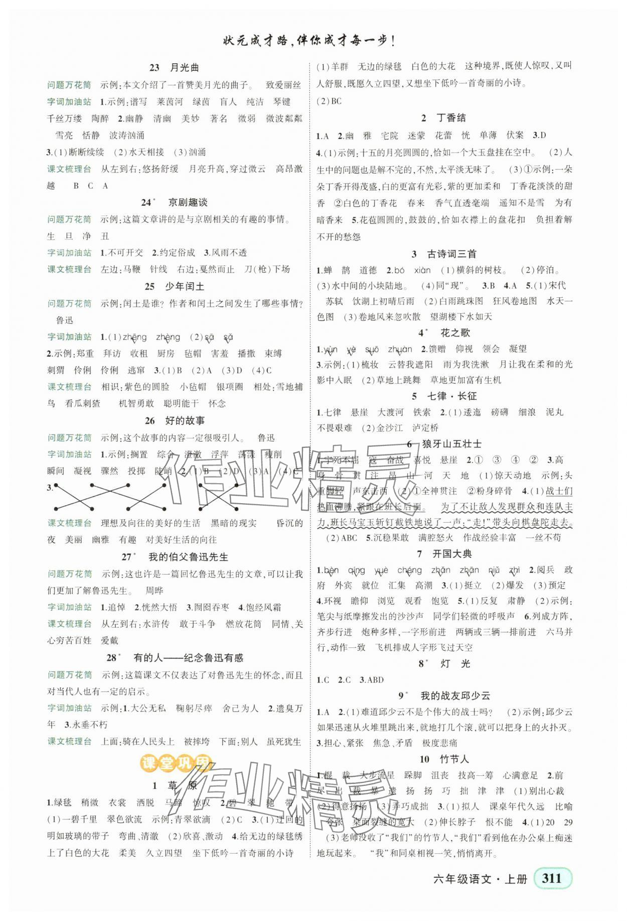 注:目前有些书本章节名称可能整理的还不是很完善,但都是按照顺序排列的,请同学们按照顺序仔细查找。练习册 2025年黄冈状元成才路状元大课堂六年级语文上册人教版湖南专版 答案主要是用来给同学们做完题方便对答案用的,请勿直接抄袭。