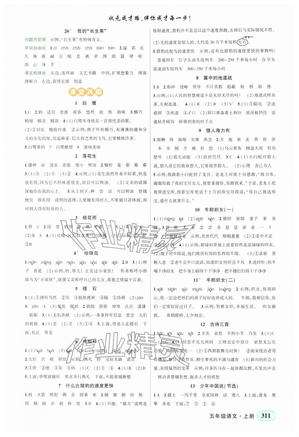注:目前有些书本章节名称可能整理的还不是很完善,但都是按照顺序排列的,请同学们按照顺序仔细查找。练习册 2025年黄冈状元成才路状元大课堂五年级语文上册人教版湖南专版 答案主要是用来给同学们做完题方便对答案用的,请勿直接抄袭。