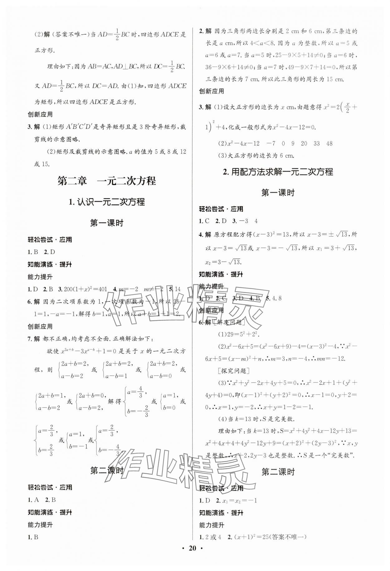 精英家教网> 2025年初中同步测控优化设计九年级数学上册北师大版重庆专版 > 第4页 参考答案