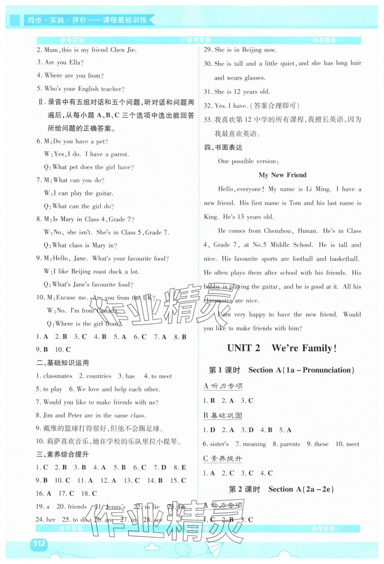 注:目前有些书本章节名称可能整理的还不是很完善,但都是按照顺序排列的,请同学们按照顺序仔细查找。练习册 2025年同步实践评价课程基础训练湖南少年儿童出版社七年级英语上册人教版 答案主要是用来给同学们做完题方便对答案用的,请勿直接抄袭。