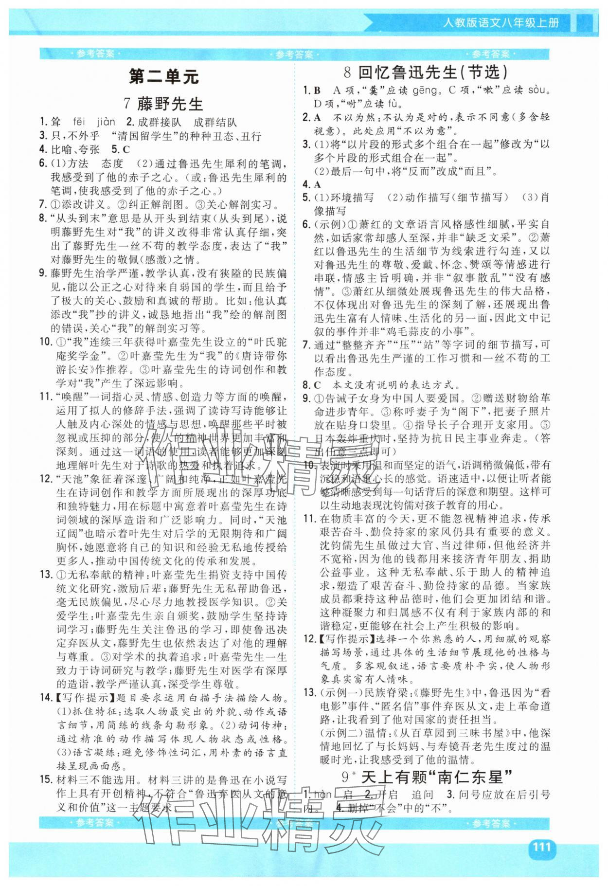 精英家教网> 2025年同步实践评价课程基础训练湖南少年儿童出版社八年级语文上册人教版 > 第3页 参考答案
