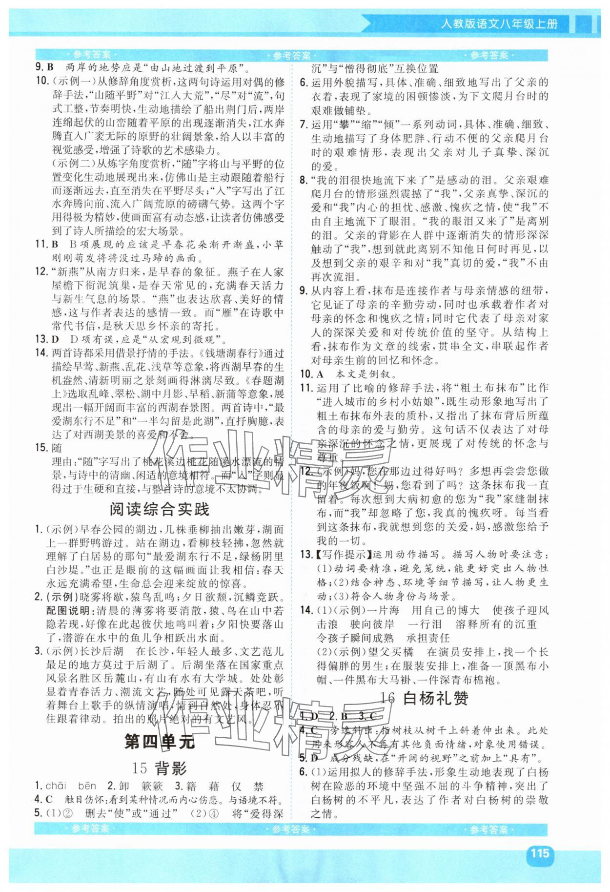 注:目前有些书本章节名称可能整理的还不是很完善,但都是按照顺序排列的,请同学们按照顺序仔细查找。练习册 2025年同步实践评价课程基础训练湖南少年儿童出版社八年级语文上册人教版 答案主要是用来给同学们做完题方便对答案用的,请勿直接抄袭。