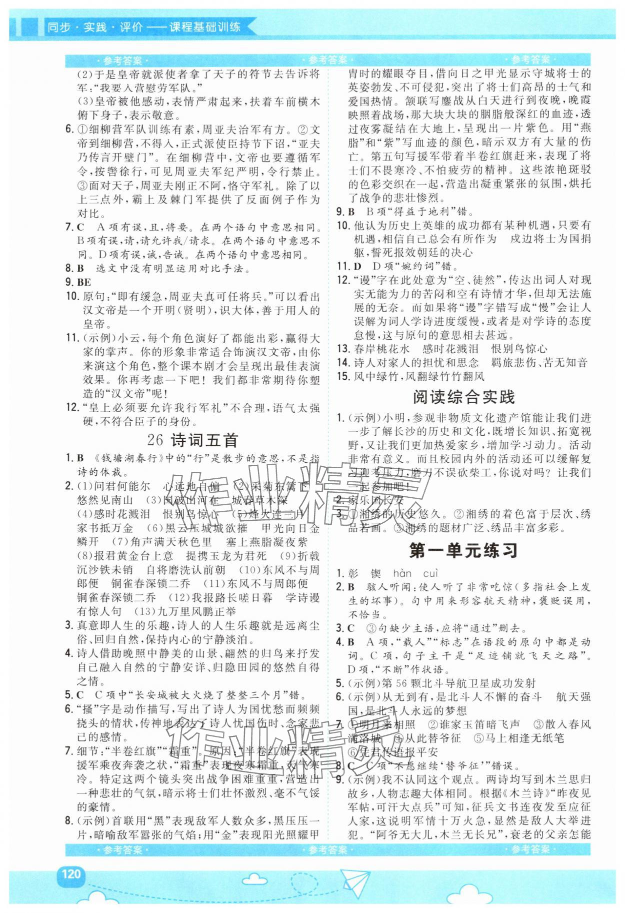 注:目前有些书本章节名称可能整理的还不是很完善,但都是按照顺序排列的,请同学们按照顺序仔细查找。练习册 2025年同步实践评价课程基础训练湖南少年儿童出版社八年级语文上册人教版 答案主要是用来给同学们做完题方便对答案用的,请勿直接抄袭。