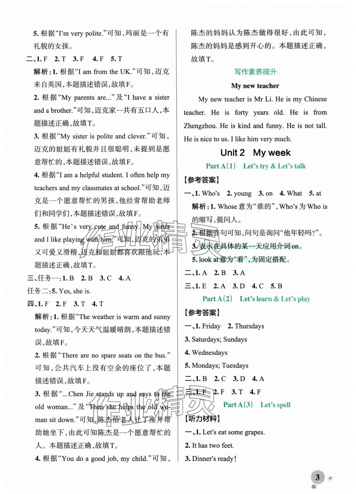 2025年绿卡小学作业本五年级英语上册人教版郑州专版 参考答案第3页