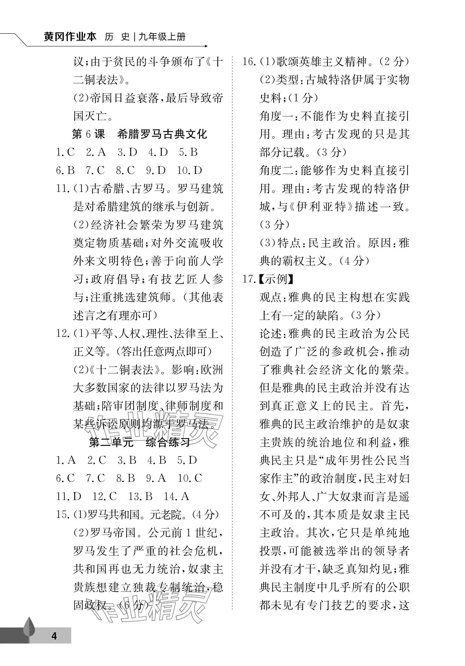 注:目前有些书本章节名称可能整理的还不是很完善,但都是按照顺序排列的,请同学们按照顺序仔细查找。练习册2025年黄冈作业本武汉大学出版社九年级历史上册人教版答案主要是用来给同学们做完题方便对答案用的,请勿直接抄袭。