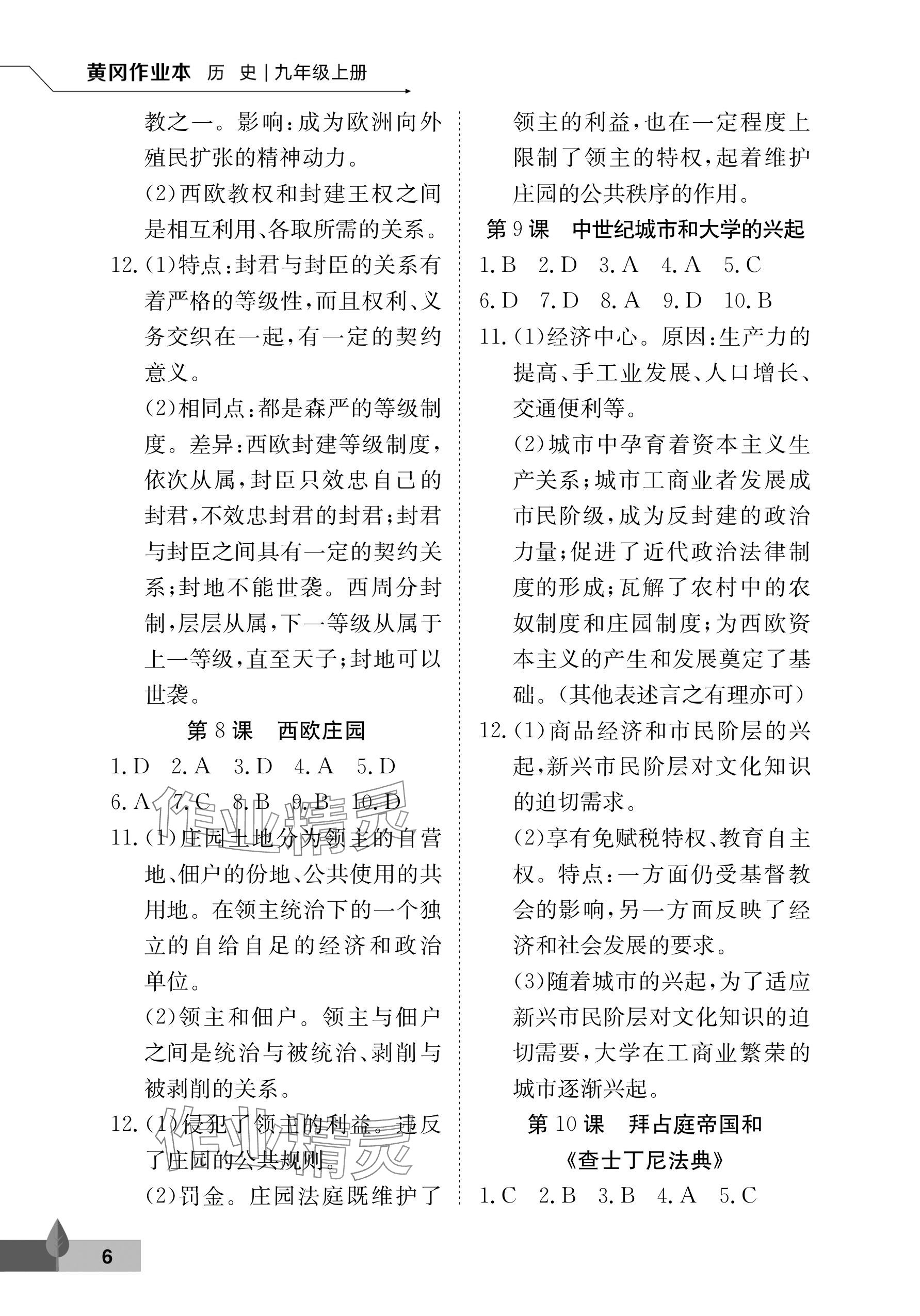 2025年黄冈作业本武汉大学出版社九年级历史上册人教版 参考答案第6页