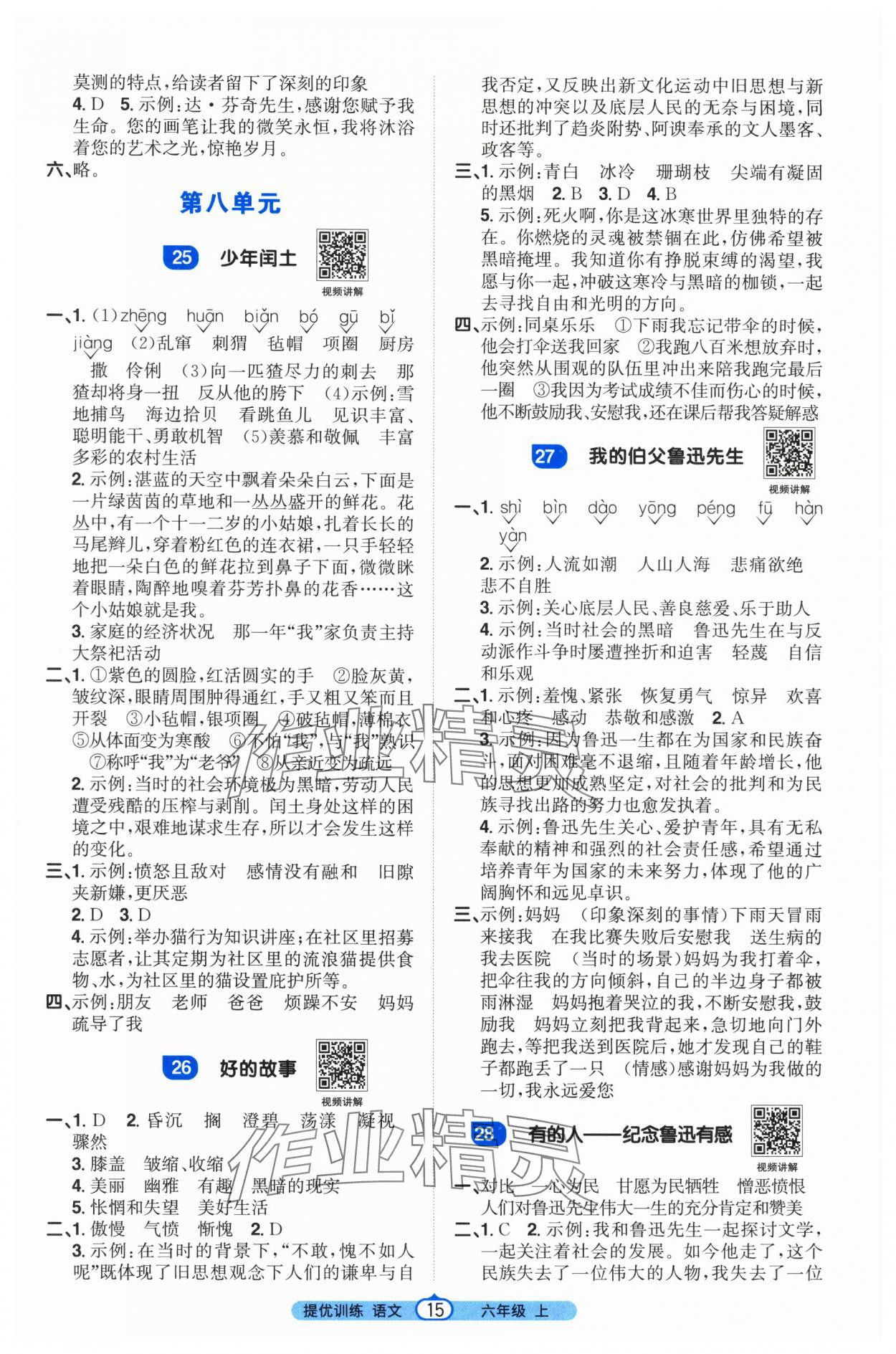 注:目前有些书本章节名称可能整理的还不是很完善,但都是按照顺序排列的,请同学们按照顺序仔细查找。练习册 2025年阳光同学课时提优训练六年级语文上册人教版 答案主要是用来给同学们做完题方便对答案用的,请勿直接抄袭。