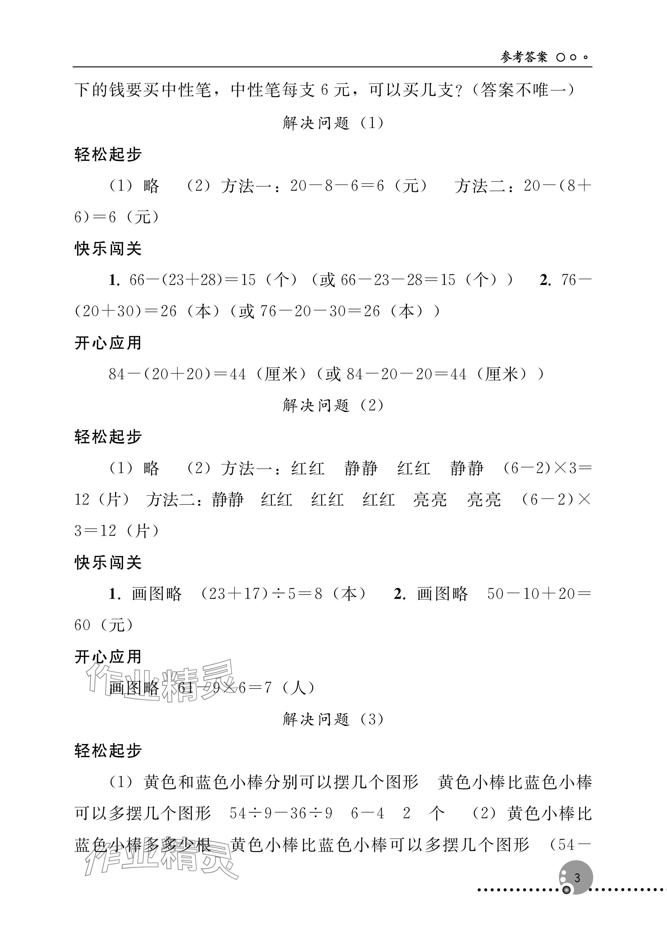 精英家教网> 2025年同步练习册人民教育出版社三年级数学上册人教版新疆专版 > 参考答案第3页 参考答案