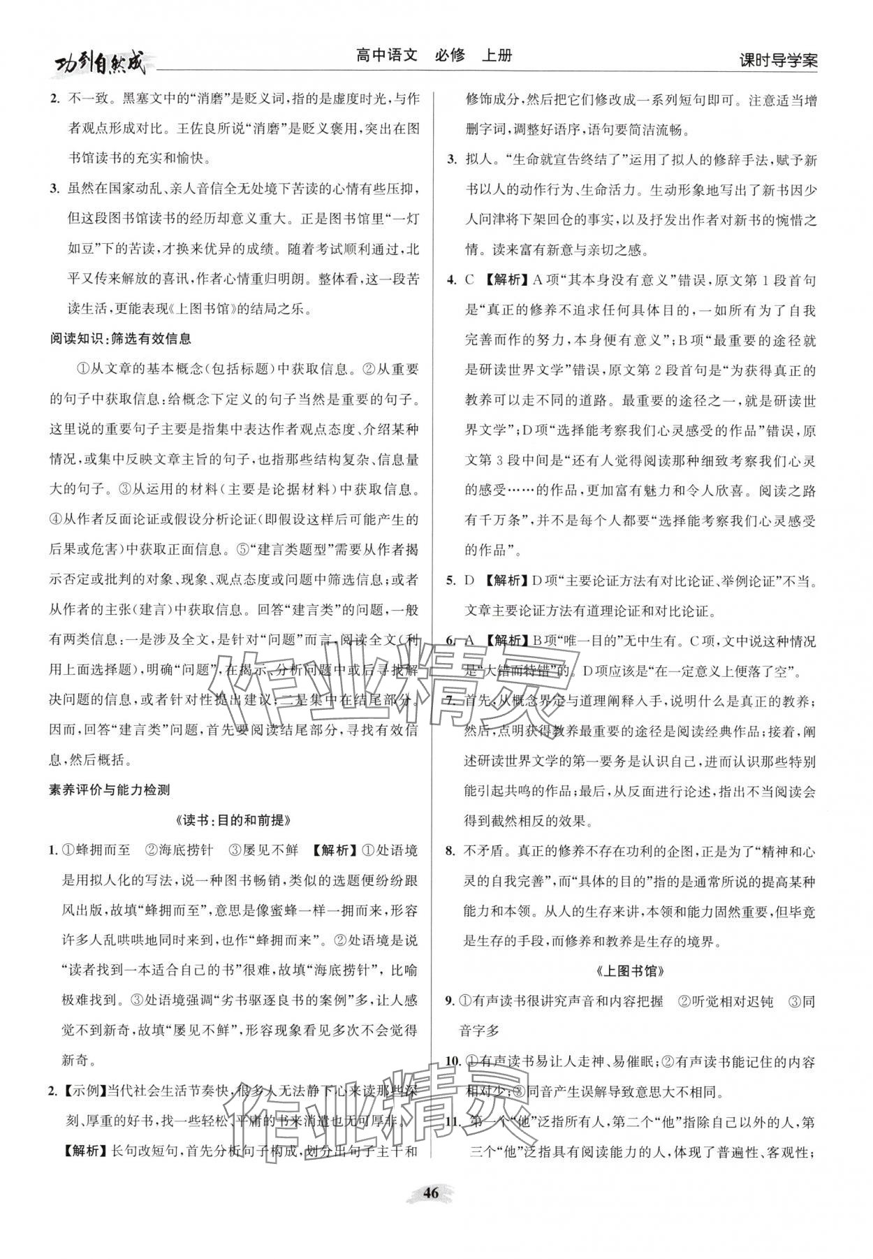 注:目前有些书本章节名称可能整理的还不是很完善,但都是按照顺序排列的,请同学们按照顺序仔细查找。练习册 2025年功到自然成课时导学案语文必修上册 答案主要是用来给同学们做完题方便对答案用的,请勿直接抄袭。