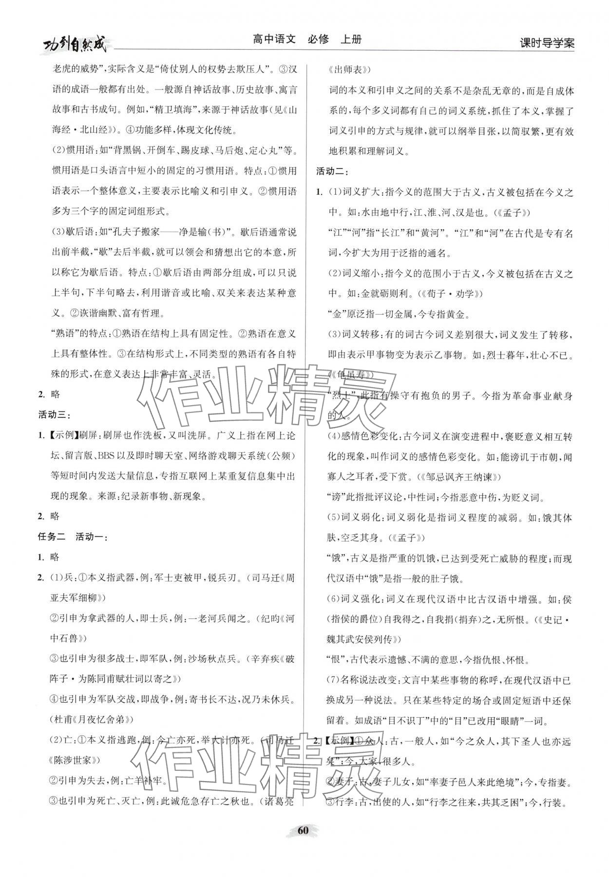 注:目前有些书本章节名称可能整理的还不是很完善,但都是按照顺序排列的,请同学们按照顺序仔细查找。练习册 2025年功到自然成课时导学案语文必修上册 答案主要是用来给同学们做完题方便对答案用的,请勿直接抄袭。
