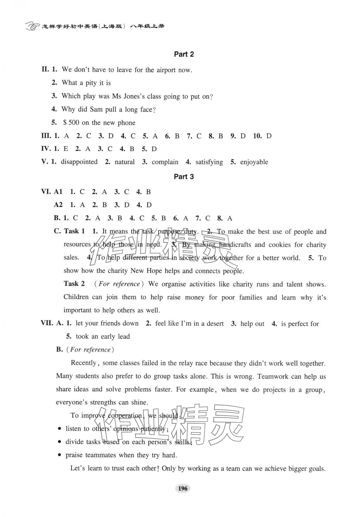 注:目前有些书本章节名称可能整理的还不是很完善,但都是按照顺序排列的,请同学们按照顺序仔细查找。练习册 2025年怎样学好初中英语八年级英语上册沪教版五四制 答案主要是用来给同学们做完题方便对答案用的,请勿直接抄袭。