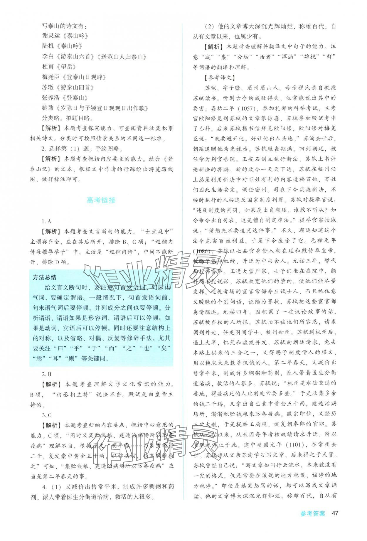 注:目前有些书本章节名称可能整理的还不是很完善,但都是按照顺序排列的,请同学们按照顺序仔细查找。练习册 2025年同步解析与测评陕西人民教育出版社高中语文必修上册人教版 答案主要是用来给同学们做完题方便对答案用的,请勿直接抄袭。