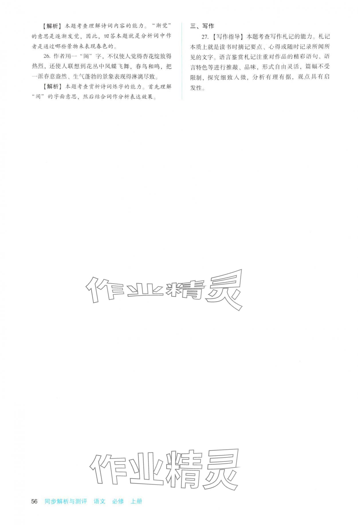 注:目前有些书本章节名称可能整理的还不是很完善,但都是按照顺序排列的,请同学们按照顺序仔细查找。练习册 2025年同步解析与测评陕西人民教育出版社高中语文必修上册人教版 答案主要是用来给同学们做完题方便对答案用的,请勿直接抄袭。