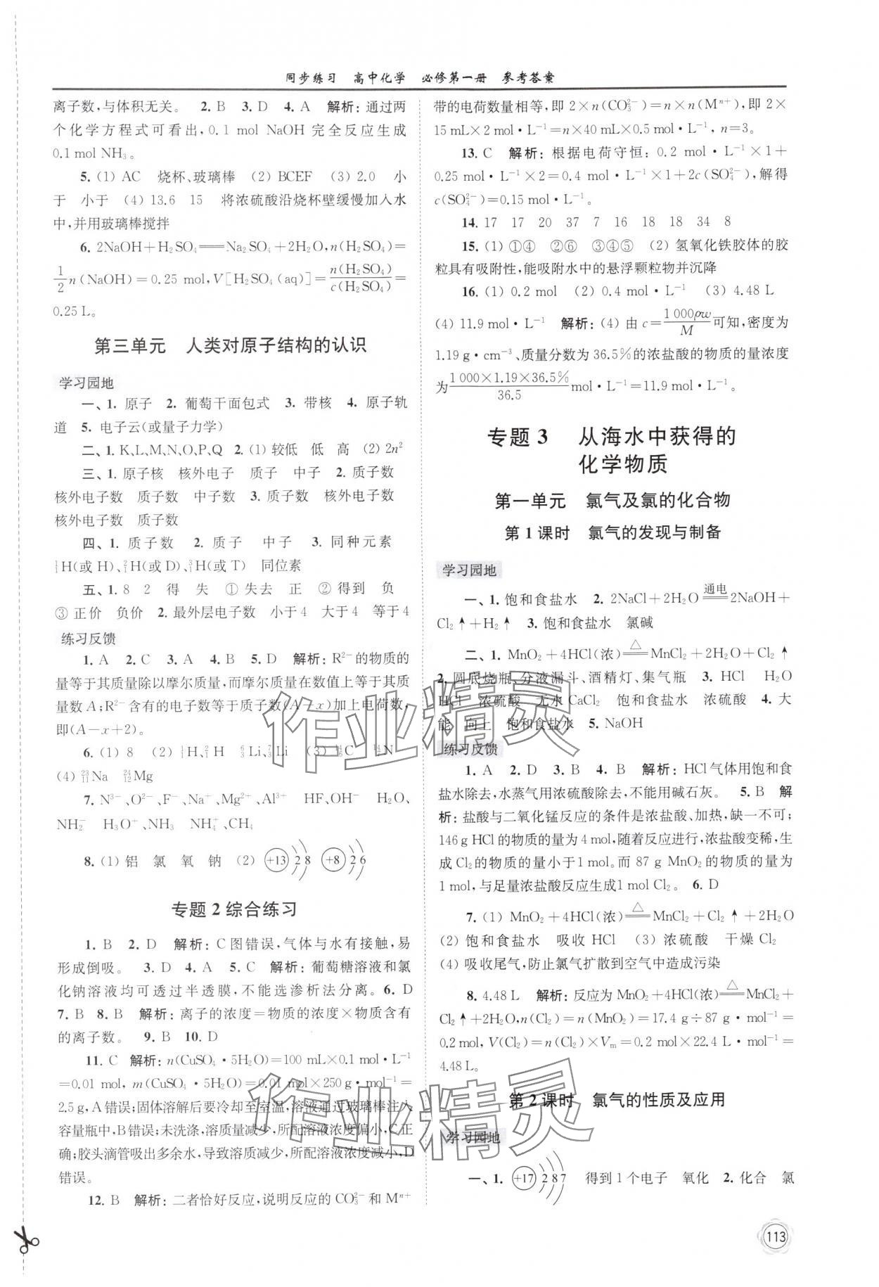 注:目前有些书本章节名称可能整理的还不是很完善,但都是按照顺序排列的,请同学们按照顺序仔细查找。练习册 2025年同步练习高中化学必修第一册苏教版 答案主要是用来给同学们做完题方便对答案用的,请勿直接抄袭。
