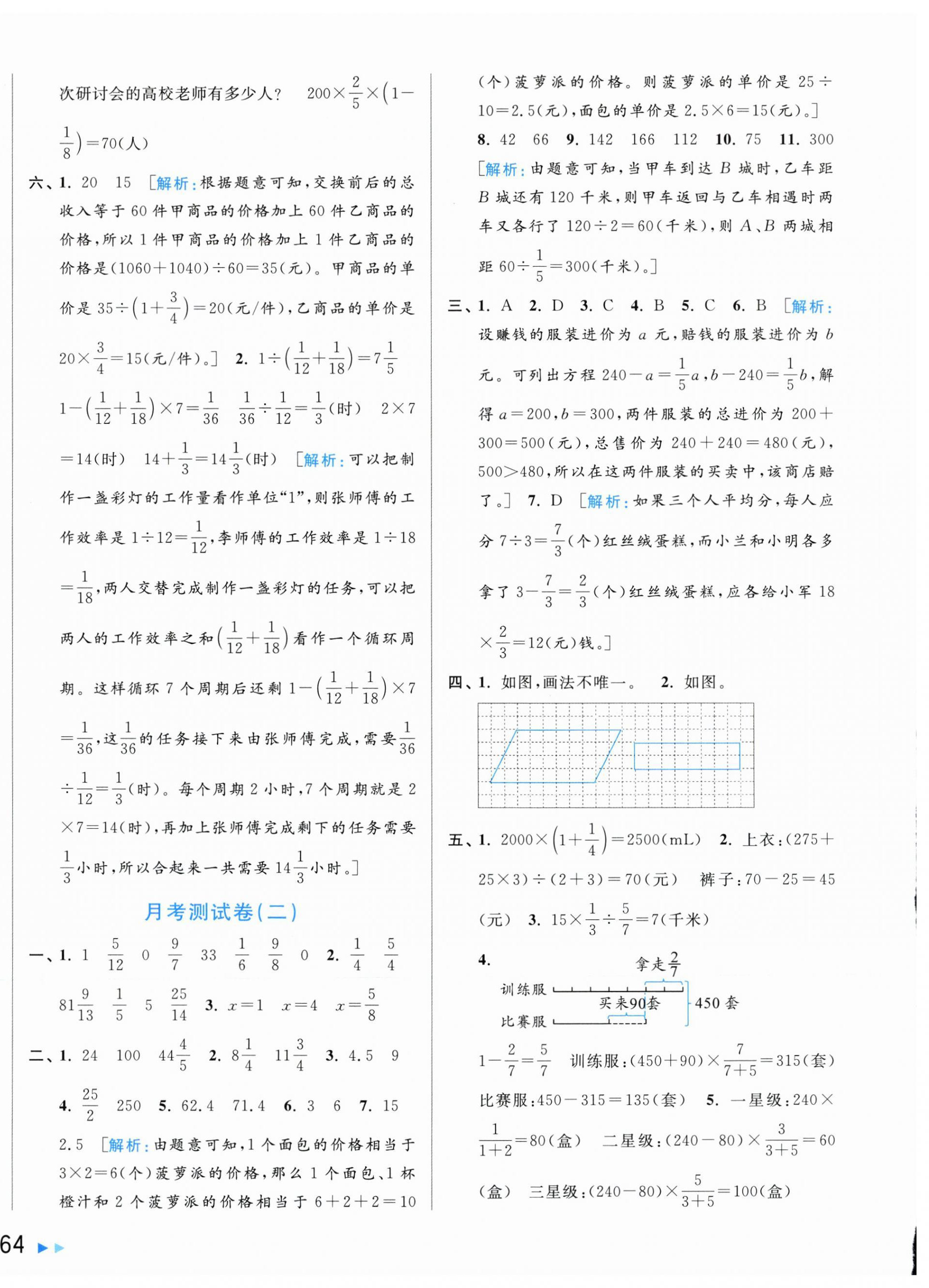 注:目前有些书本章节名称可能整理的还不是很完善,但都是按照顺序排列的,请同学们按照顺序仔细查找。练习册 2025年亮点给力大试卷六年级数学上册苏教版 答案主要是用来给同学们做完题方便对答案用的,请勿直接抄袭。
