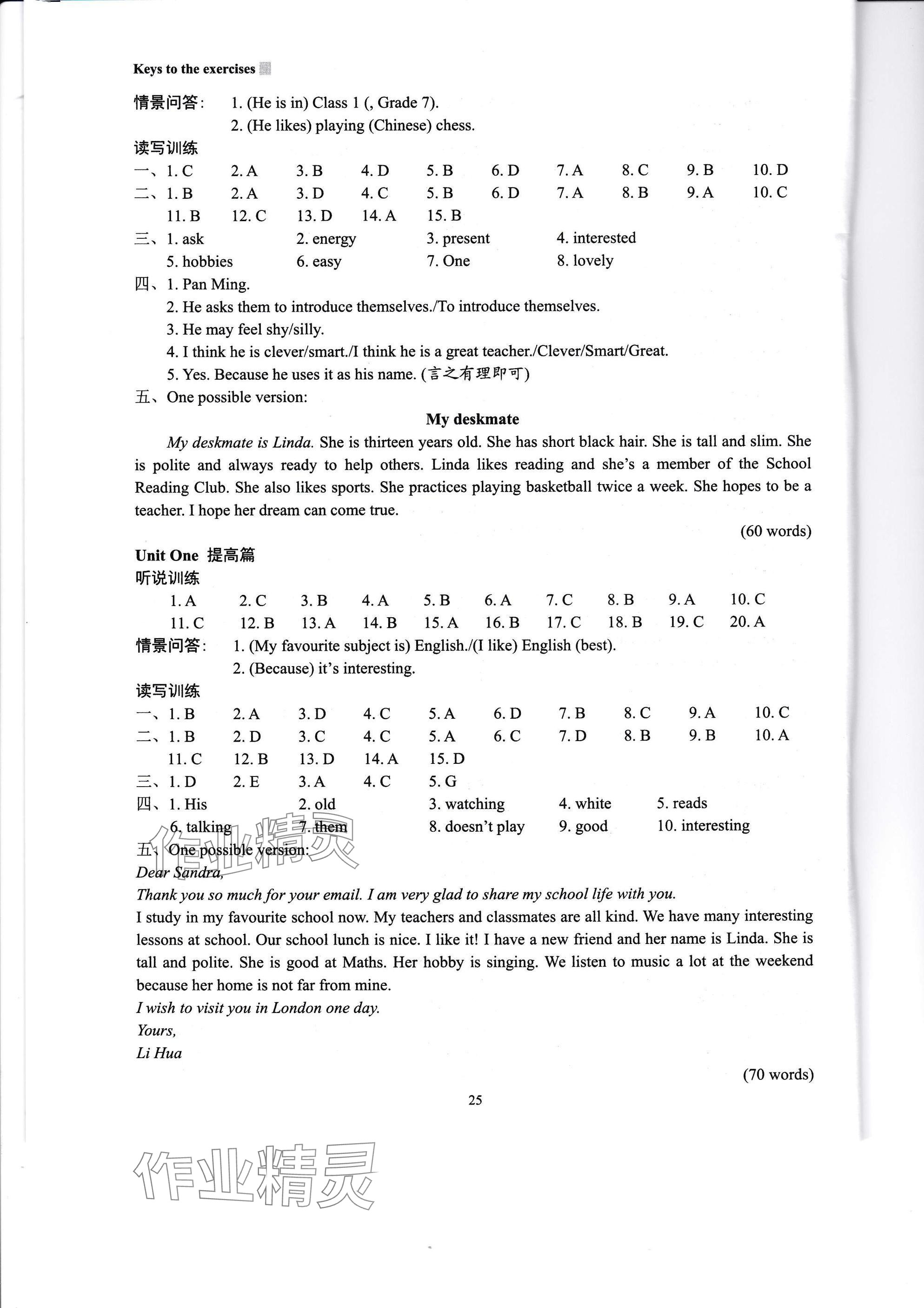 注:目前有些书本章节名称可能整理的还不是很完善,但都是按照顺序排列的,请同学们按照顺序仔细查找。练习册 2025年新课程初中英语读写训练七年级英语上册译林版 答案主要是用来给同学们做完题方便对答案用的,请勿直接抄袭。