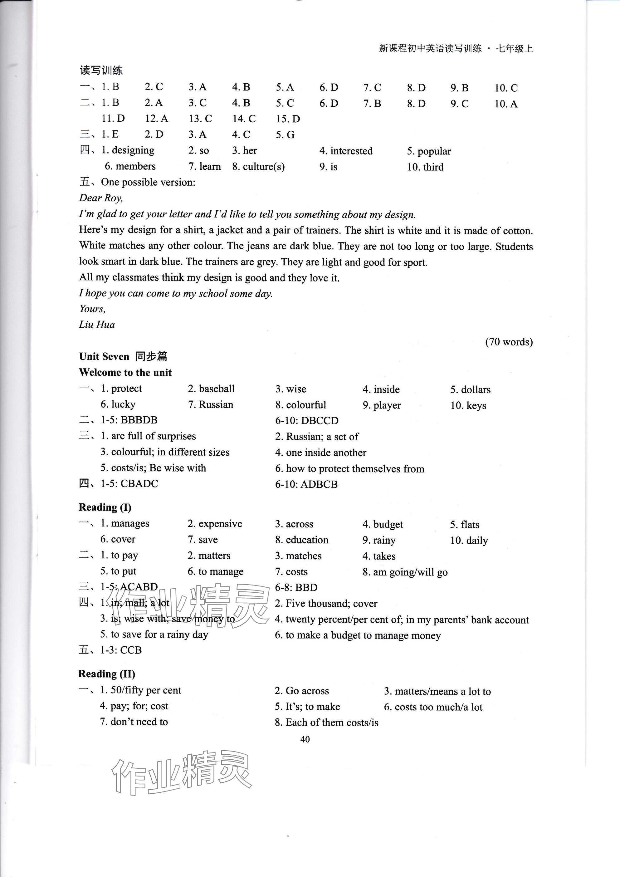 注:目前有些书本章节名称可能整理的还不是很完善,但都是按照顺序排列的,请同学们按照顺序仔细查找。练习册 2025年新课程初中英语读写训练七年级英语上册译林版 答案主要是用来给同学们做完题方便对答案用的,请勿直接抄袭。