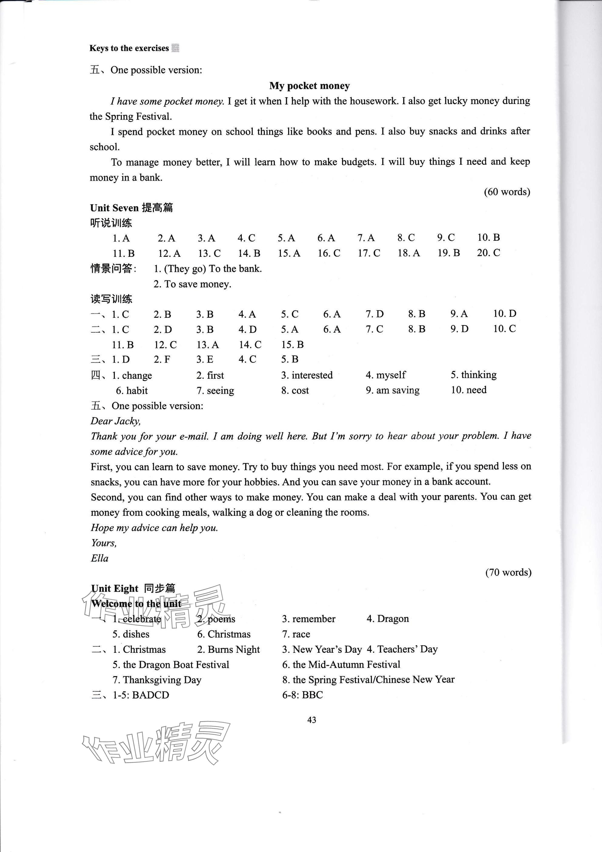 注:目前有些书本章节名称可能整理的还不是很完善,但都是按照顺序排列的,请同学们按照顺序仔细查找。练习册 2025年新课程初中英语读写训练七年级英语上册译林版 答案主要是用来给同学们做完题方便对答案用的,请勿直接抄袭。