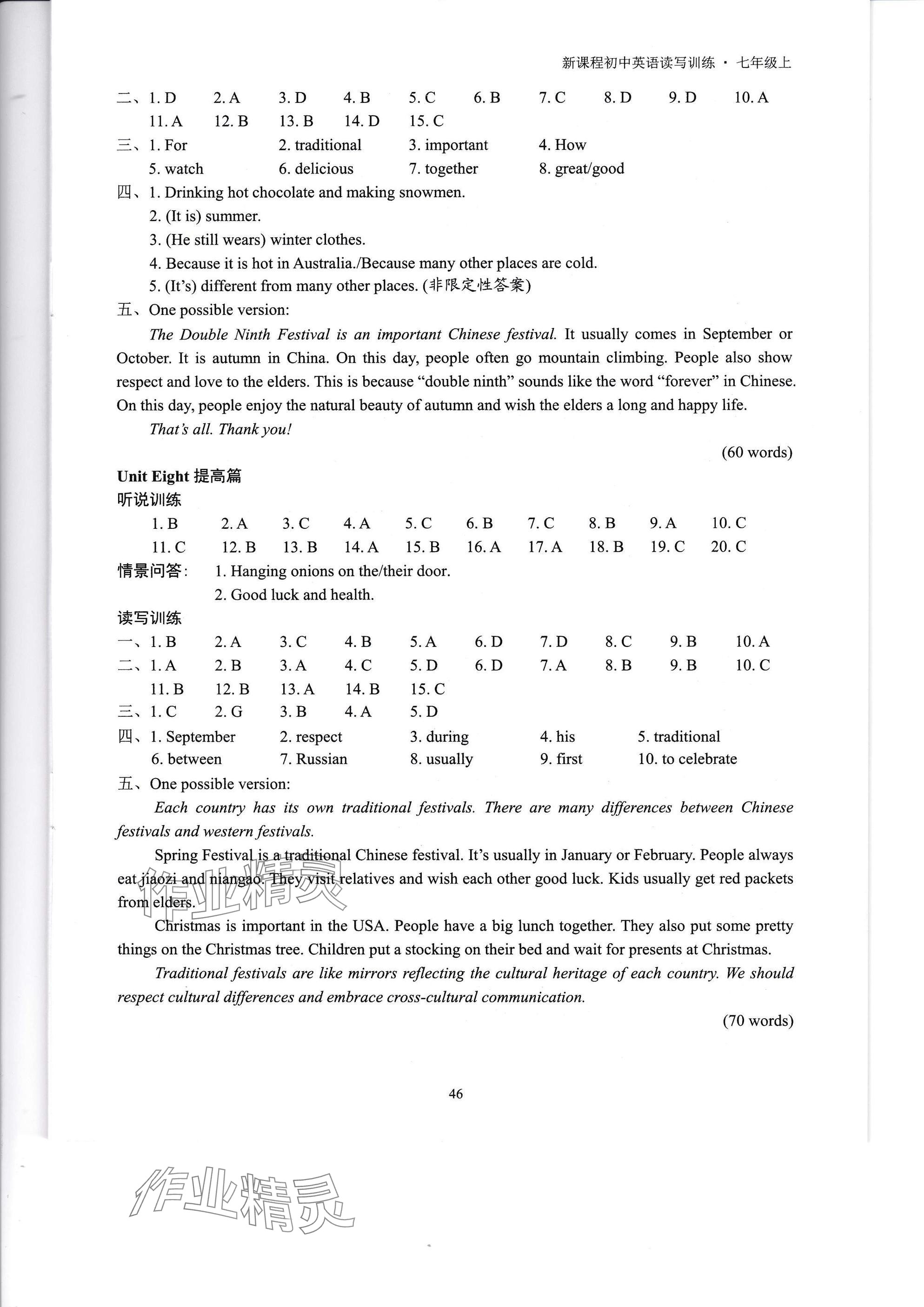 注:目前有些书本章节名称可能整理的还不是很完善,但都是按照顺序排列的,请同学们按照顺序仔细查找。练习册 2025年新课程初中英语读写训练七年级英语上册译林版 答案主要是用来给同学们做完题方便对答案用的,请勿直接抄袭。