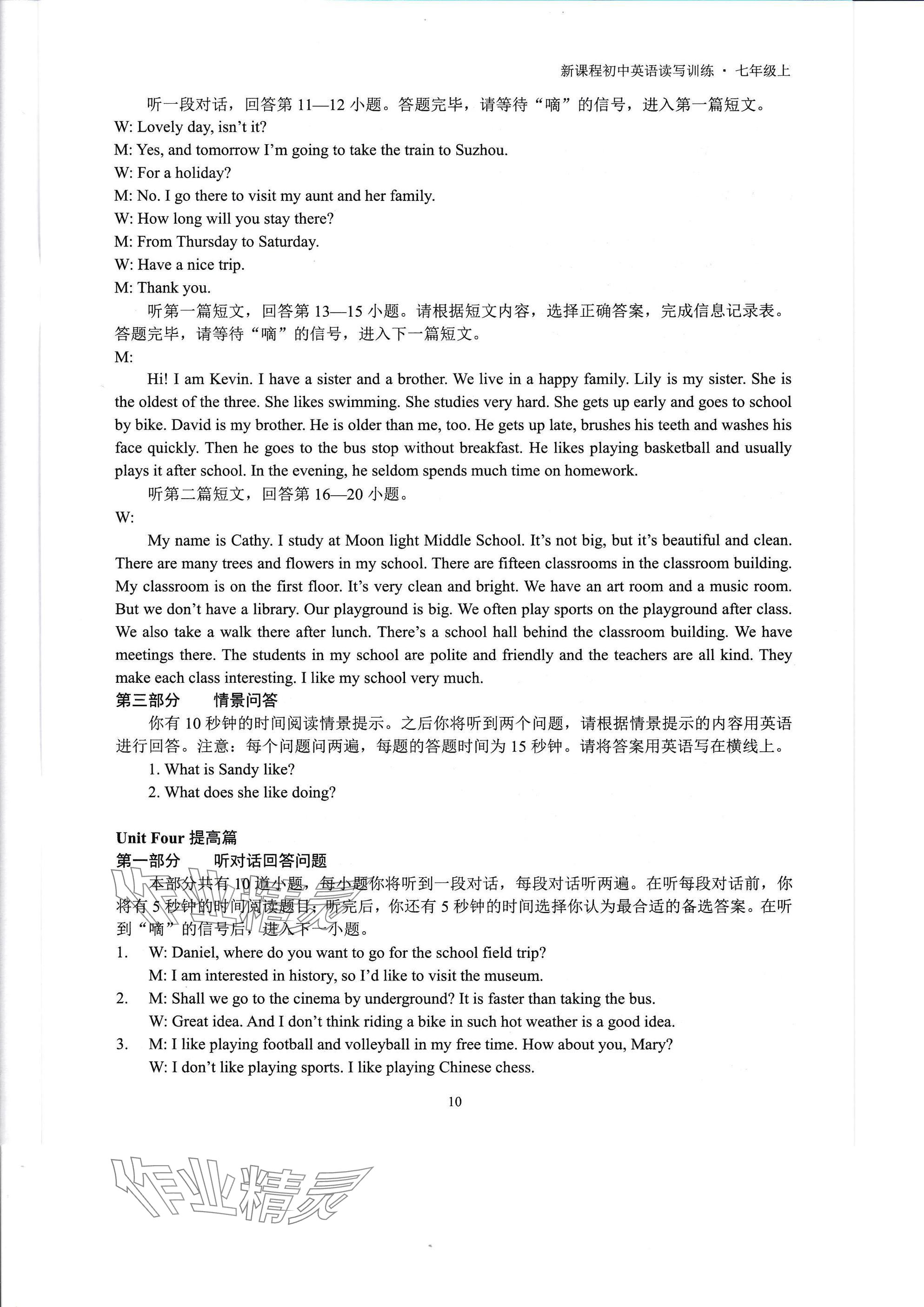 注:目前有些书本章节名称可能整理的还不是很完善,但都是按照顺序排列的,请同学们按照顺序仔细查找。练习册 2025年新课程初中英语读写训练七年级英语上册译林版 答案主要是用来给同学们做完题方便对答案用的,请勿直接抄袭。