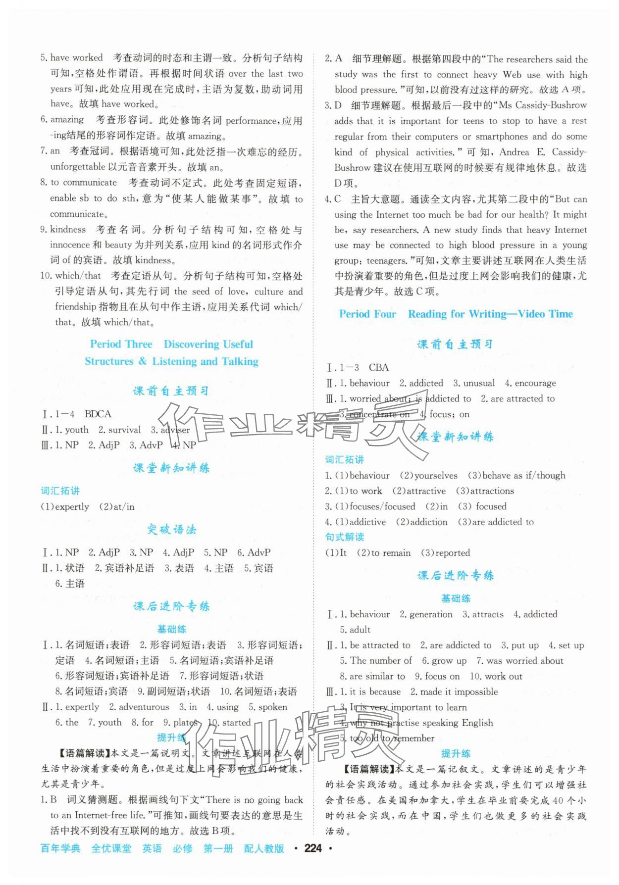 注:目前有些书本章节名称可能整理的还不是很完善,但都是按照顺序排列的,请同学们按照顺序仔细查找。练习册2025年百年学典全优课堂高中英语必修第一册人教版答案主要是用来给同学们做完题方便对答案用的,请勿直接抄袭。