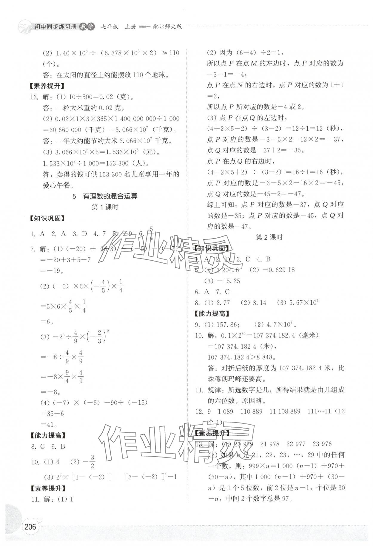 注:目前有些书本章节名称可能整理的还不是很完善,但都是按照顺序排列的,请同学们按照顺序仔细查找。练习册 2025年同步练习册山东教育出版社七年级数学上册北师大版 答案主要是用来给同学们做完题方便对答案用的,请勿直接抄袭。
