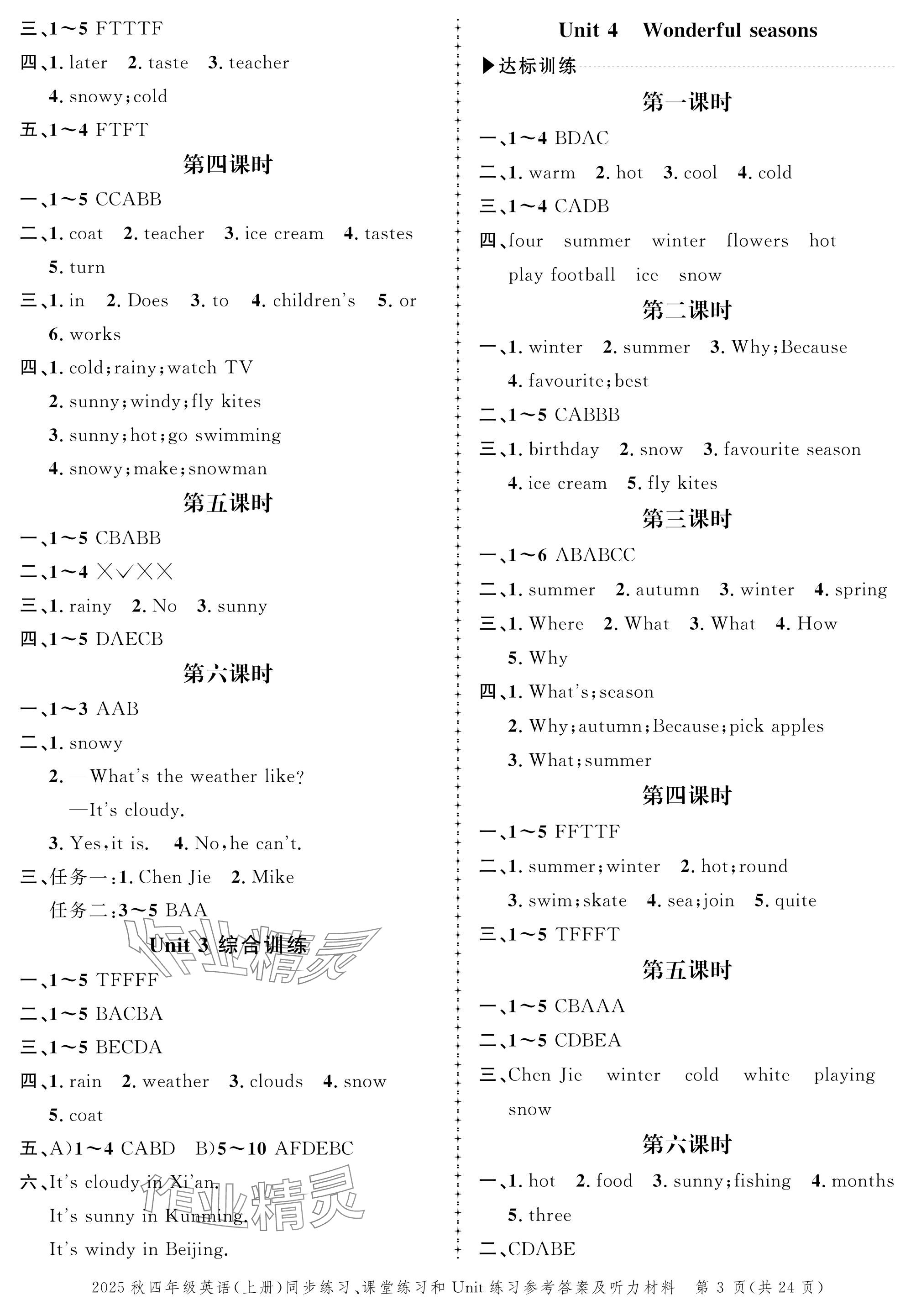 2025年创新作业同步练习四年级英语上册外研版 参考答案第3页