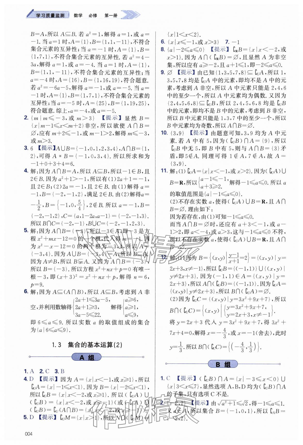 注:目前有些书本章节名称可能整理的还不是很完善,但都是按照顺序排列的,请同学们按照顺序仔细查找。练习册 2025年学习质量监测高中数学必修第一册人教A版 答案主要是用来给同学们做完题方便对答案用的,请勿直接抄袭。