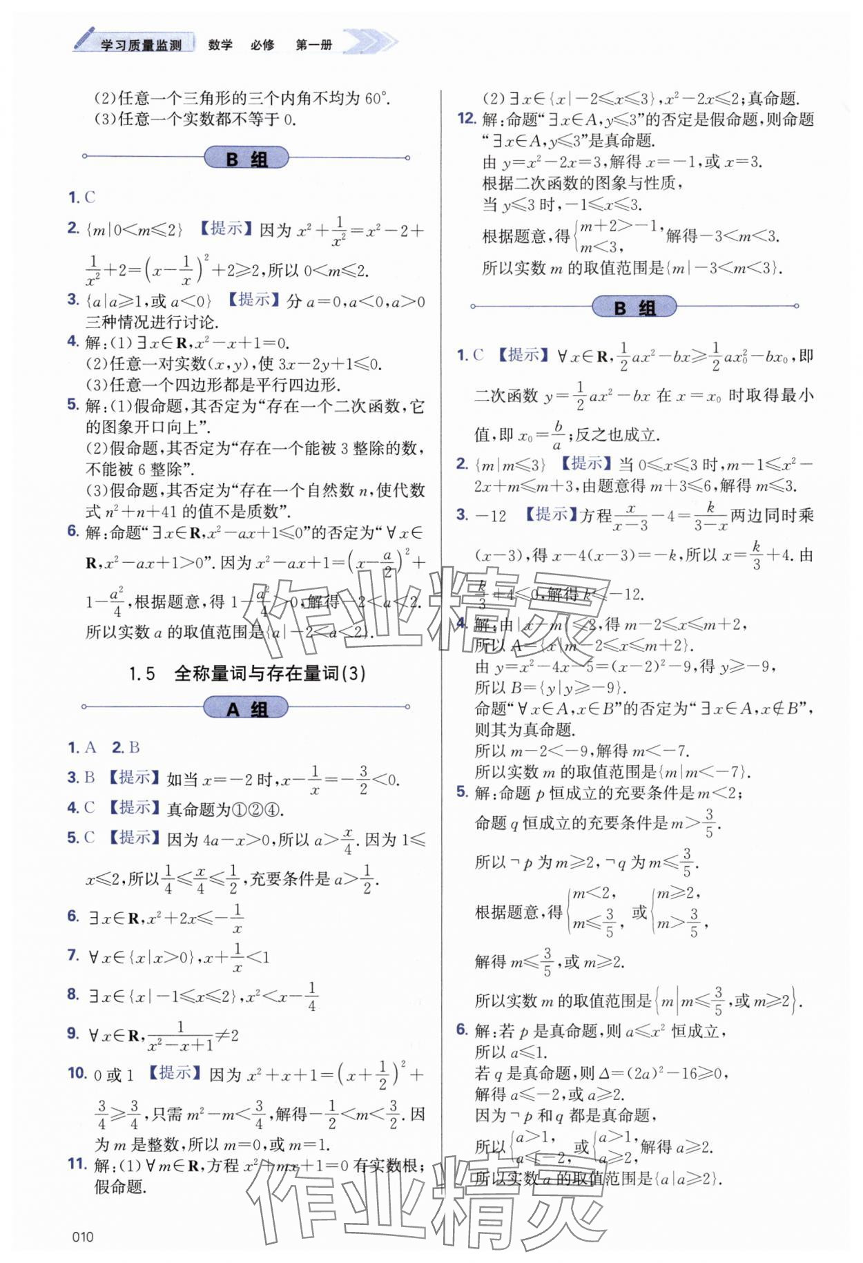注:目前有些书本章节名称可能整理的还不是很完善,但都是按照顺序排列的,请同学们按照顺序仔细查找。练习册 2025年学习质量监测高中数学必修第一册人教A版 答案主要是用来给同学们做完题方便对答案用的,请勿直接抄袭。