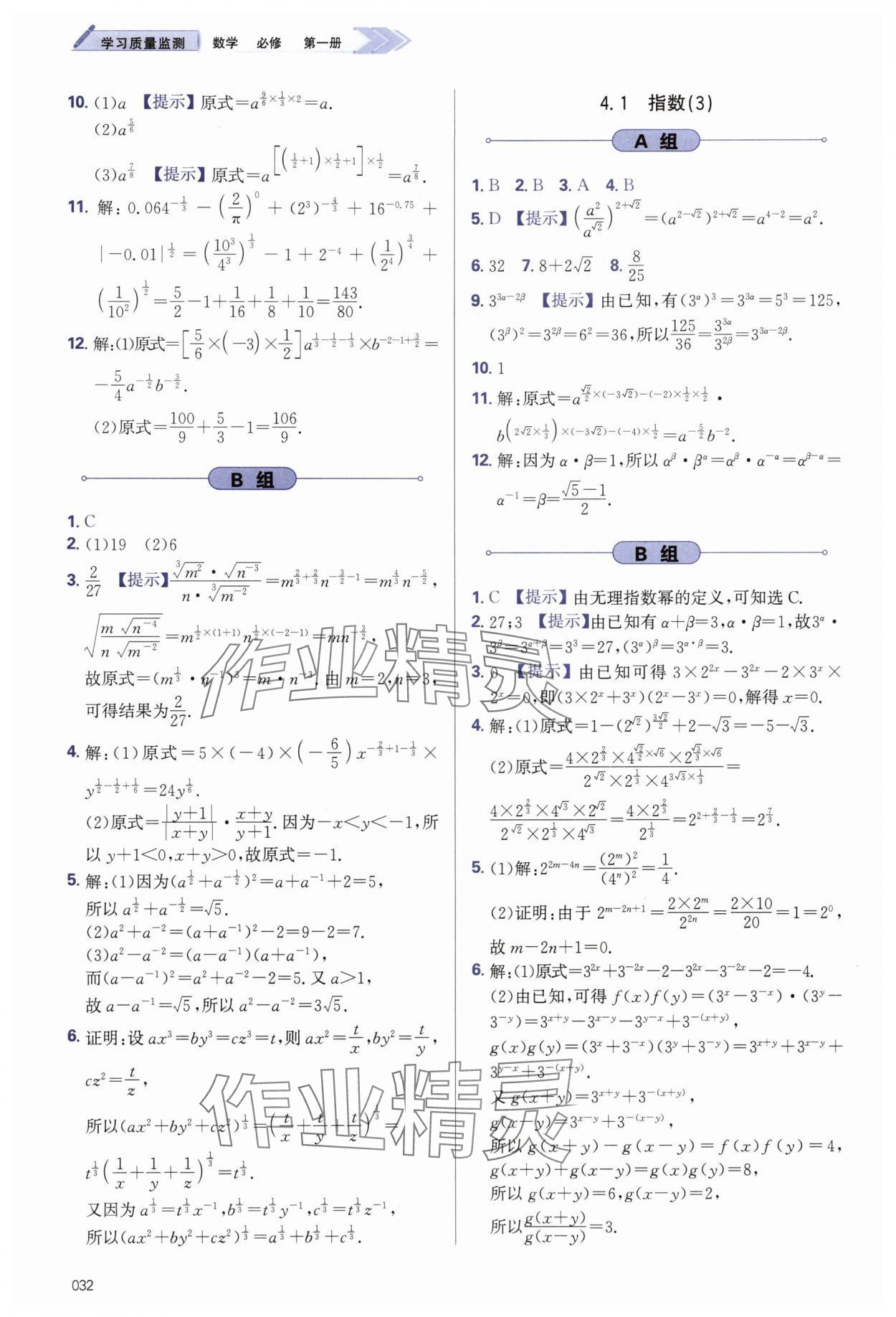 注:目前有些书本章节名称可能整理的还不是很完善,但都是按照顺序排列的,请同学们按照顺序仔细查找。练习册 2025年学习质量监测高中数学必修第一册人教A版 答案主要是用来给同学们做完题方便对答案用的,请勿直接抄袭。