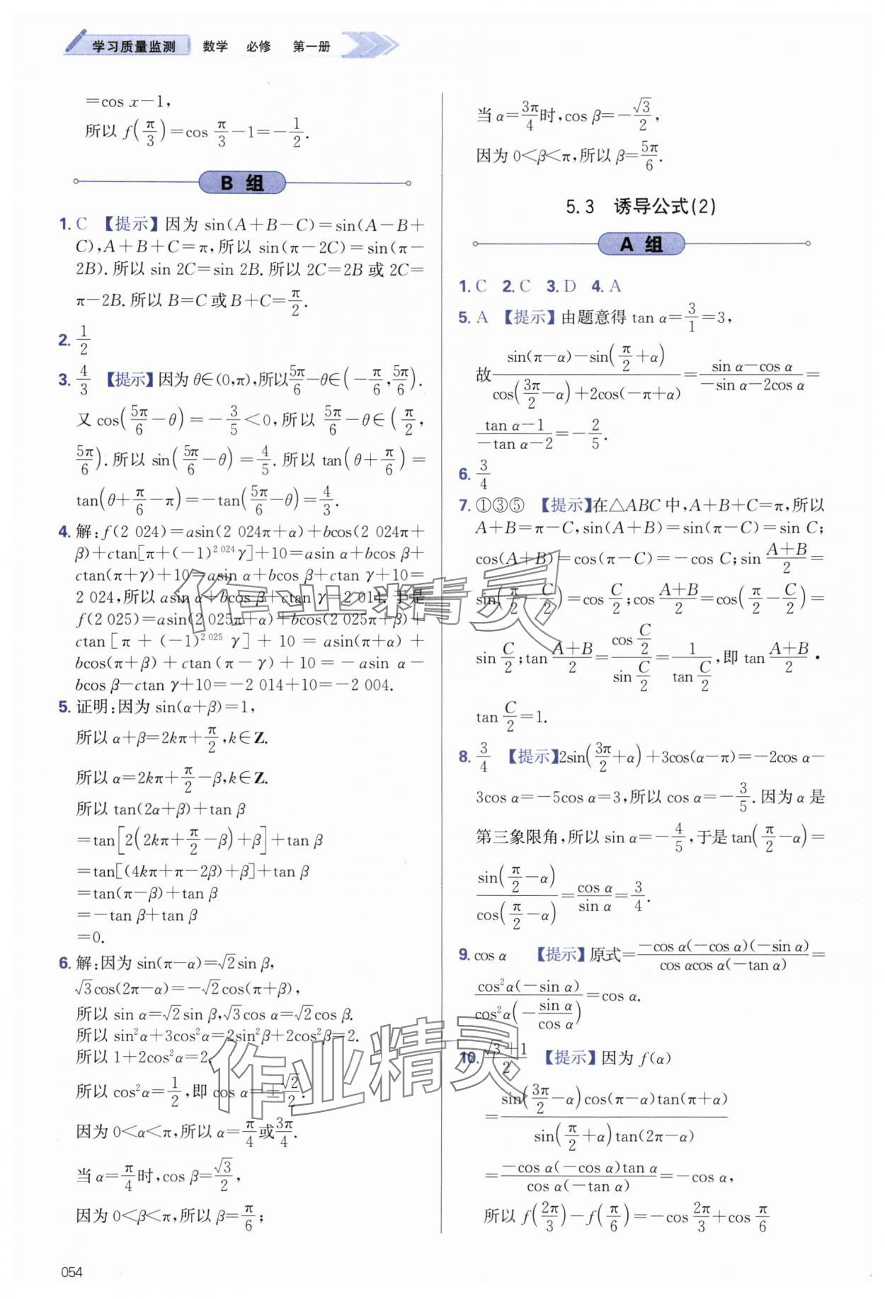 注:目前有些书本章节名称可能整理的还不是很完善,但都是按照顺序排列的,请同学们按照顺序仔细查找。练习册 2025年学习质量监测高中数学必修第一册人教A版 答案主要是用来给同学们做完题方便对答案用的,请勿直接抄袭。