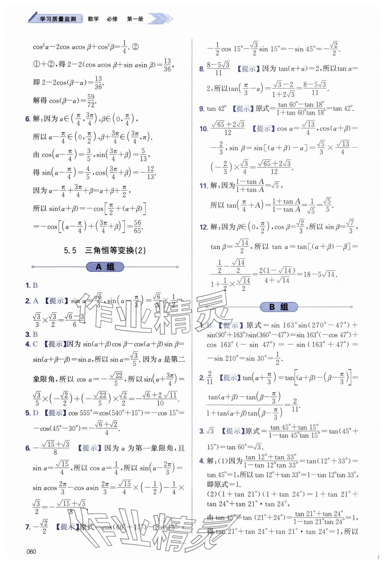 注:目前有些书本章节名称可能整理的还不是很完善,但都是按照顺序排列的,请同学们按照顺序仔细查找。练习册 2025年学习质量监测高中数学必修第一册人教A版 答案主要是用来给同学们做完题方便对答案用的,请勿直接抄袭。