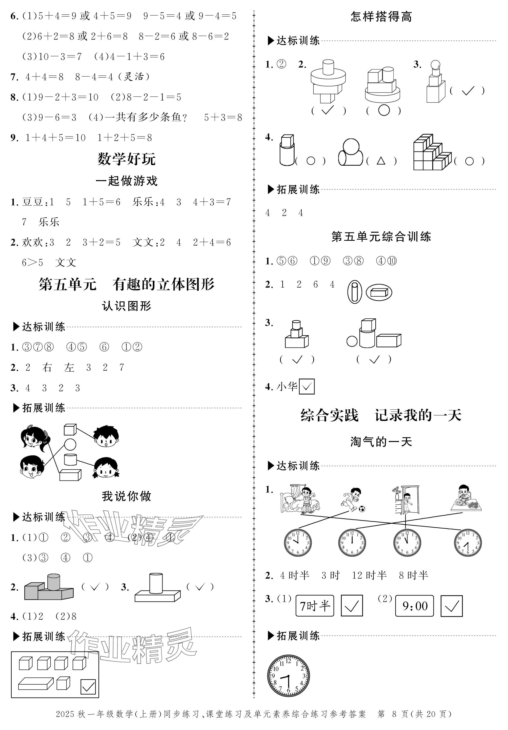 注:目前有些书本章节名称可能整理的还不是很完善,但都是按照顺序排列的,请同学们按照顺序仔细查找。练习册 2025年创新作业同步练习一年级数学上册北师大版 答案主要是用来给同学们做完题方便对答案用的,请勿直接抄袭。