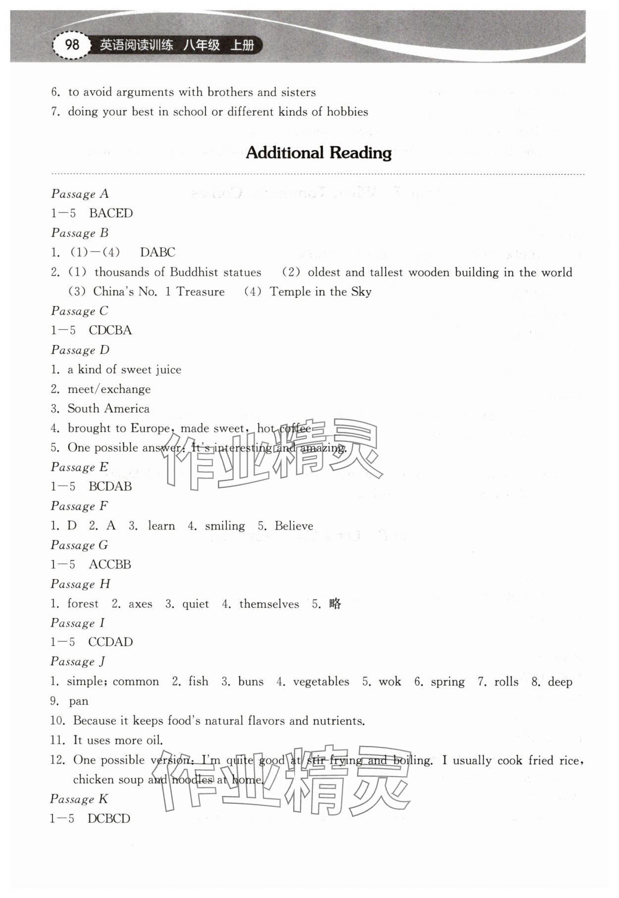 注:目前有些书本章节名称可能整理的还不是很完善,但都是按照顺序排列的,请同学们按照顺序仔细查找。练习册 2025年长江全能学案英语阅读训练八年级英语上册人教版 答案主要是用来给同学们做完题方便对答案用的,请勿直接抄袭。