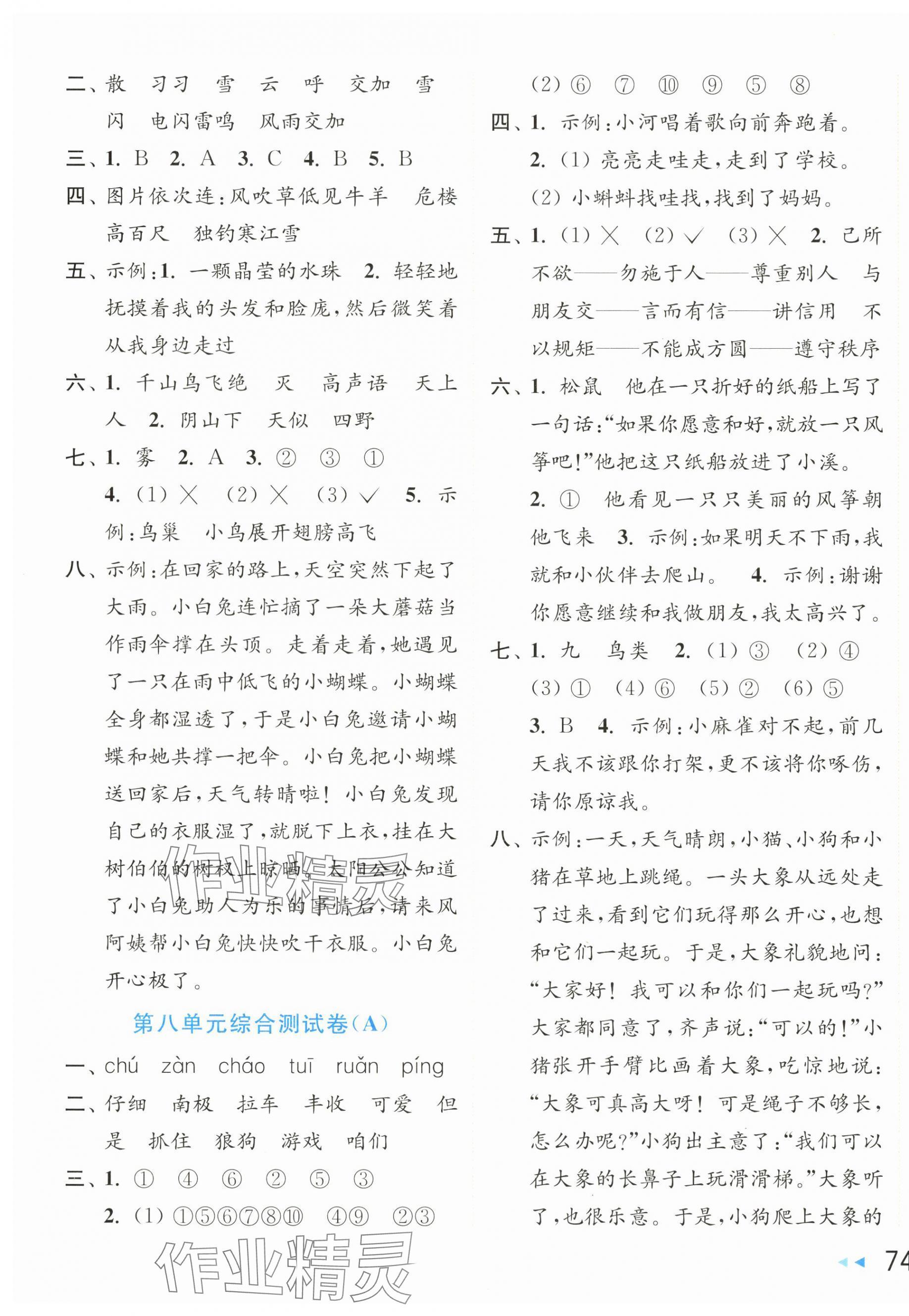 注:目前有些书本章节名称可能整理的还不是很完善,但都是按照顺序排列的,请同学们按照顺序仔细查找。练习册 2025年亮点给力大试卷二年级语文上册人教版 答案主要是用来给同学们做完题方便对答案用的,请勿直接抄袭。