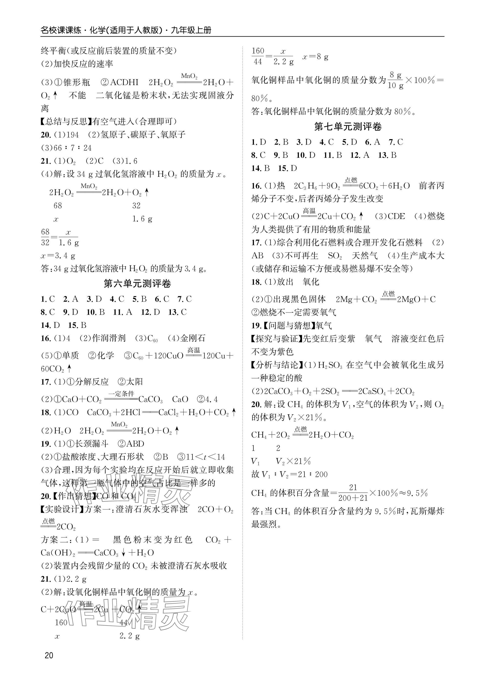 注:目前有些书本章节名称可能整理的还不是很完善,但都是按照顺序排列的,请同学们按照顺序仔细查找。练习册 2025年实至课课练九年级化学全一册人教版 答案主要是用来给同学们做完题方便对答案用的,请勿直接抄袭。