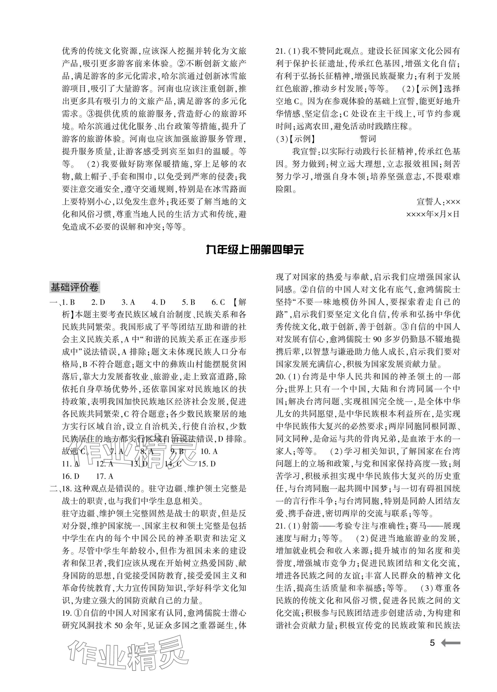 注:目前有些书本章节名称可能整理的还不是很完善,但都是按照顺序排列的,请同学们按照顺序仔细查找。练习册 2025年节节高大象出版社九年级道德与法治全一册人教版 答案主要是用来给同学们做完题方便对答案用的,请勿直接抄袭。