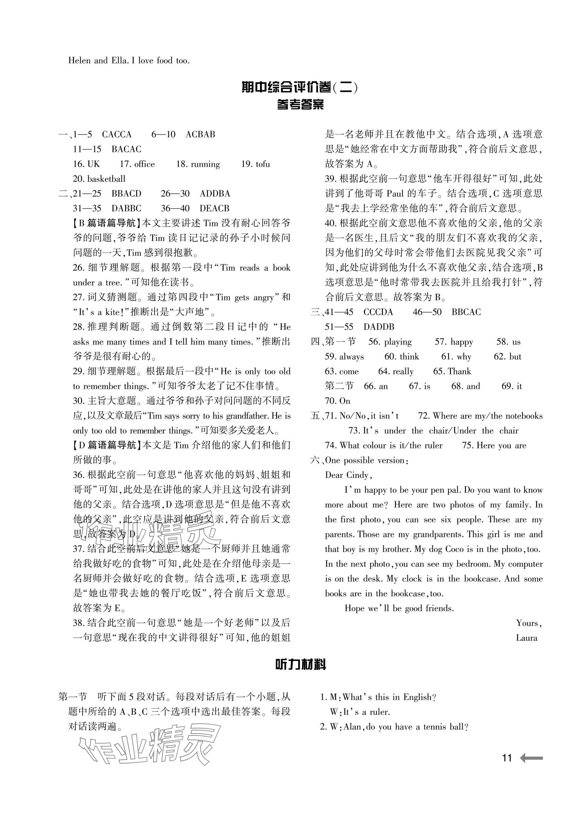 注:目前有些书本章节名称可能整理的还不是很完善,但都是按照顺序排列的,请同学们按照顺序仔细查找。练习册 2025年节节高大象出版社七年级英语上册人教版 答案主要是用来给同学们做完题方便对答案用的,请勿直接抄袭。