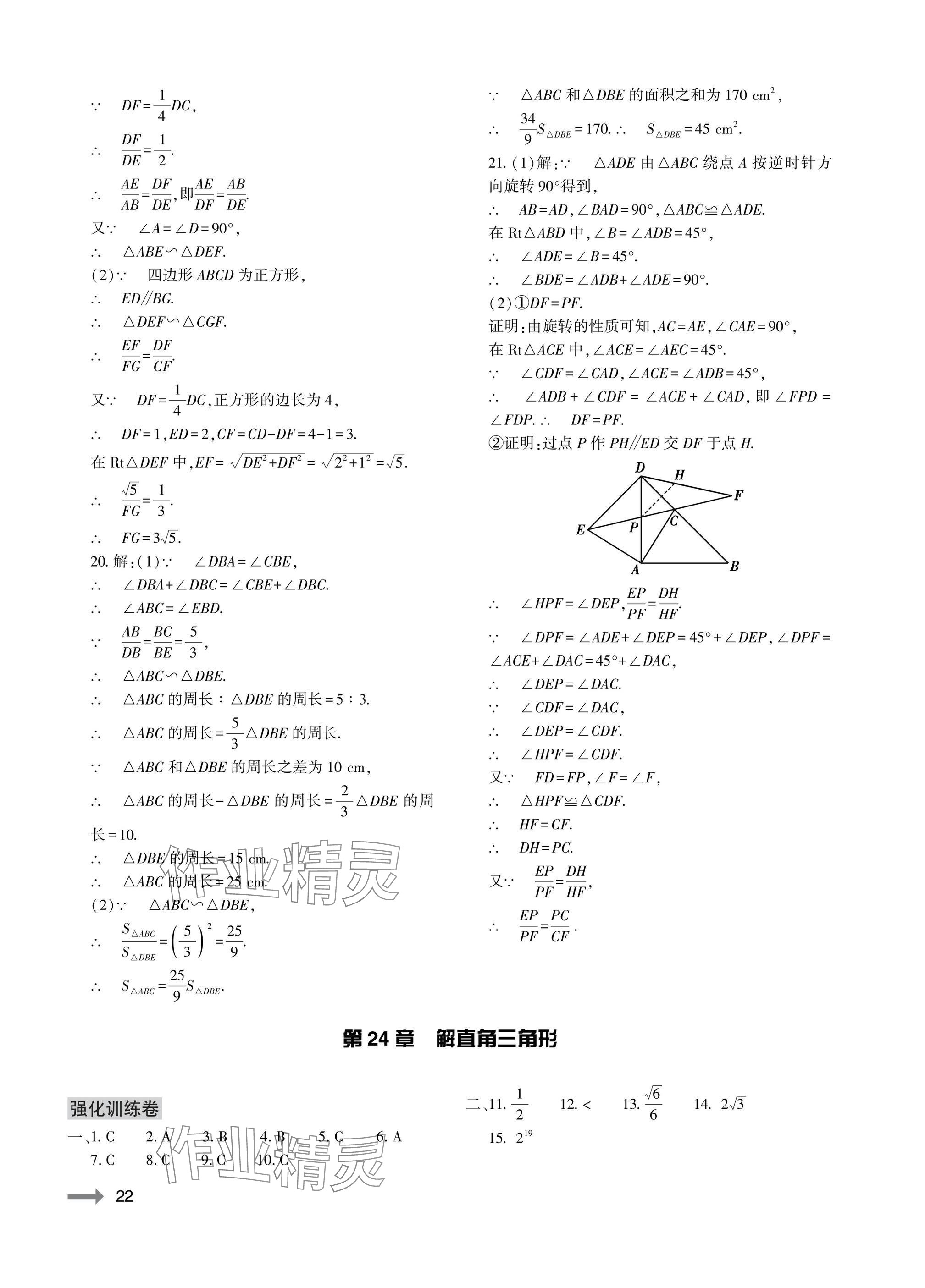 注:目前有些书本章节名称可能整理的还不是很完善,但都是按照顺序排列的,请同学们按照顺序仔细查找。练习册 2025年节节高大象出版社九年级数学全一册华师大版 答案主要是用来给同学们做完题方便对答案用的,请勿直接抄袭。