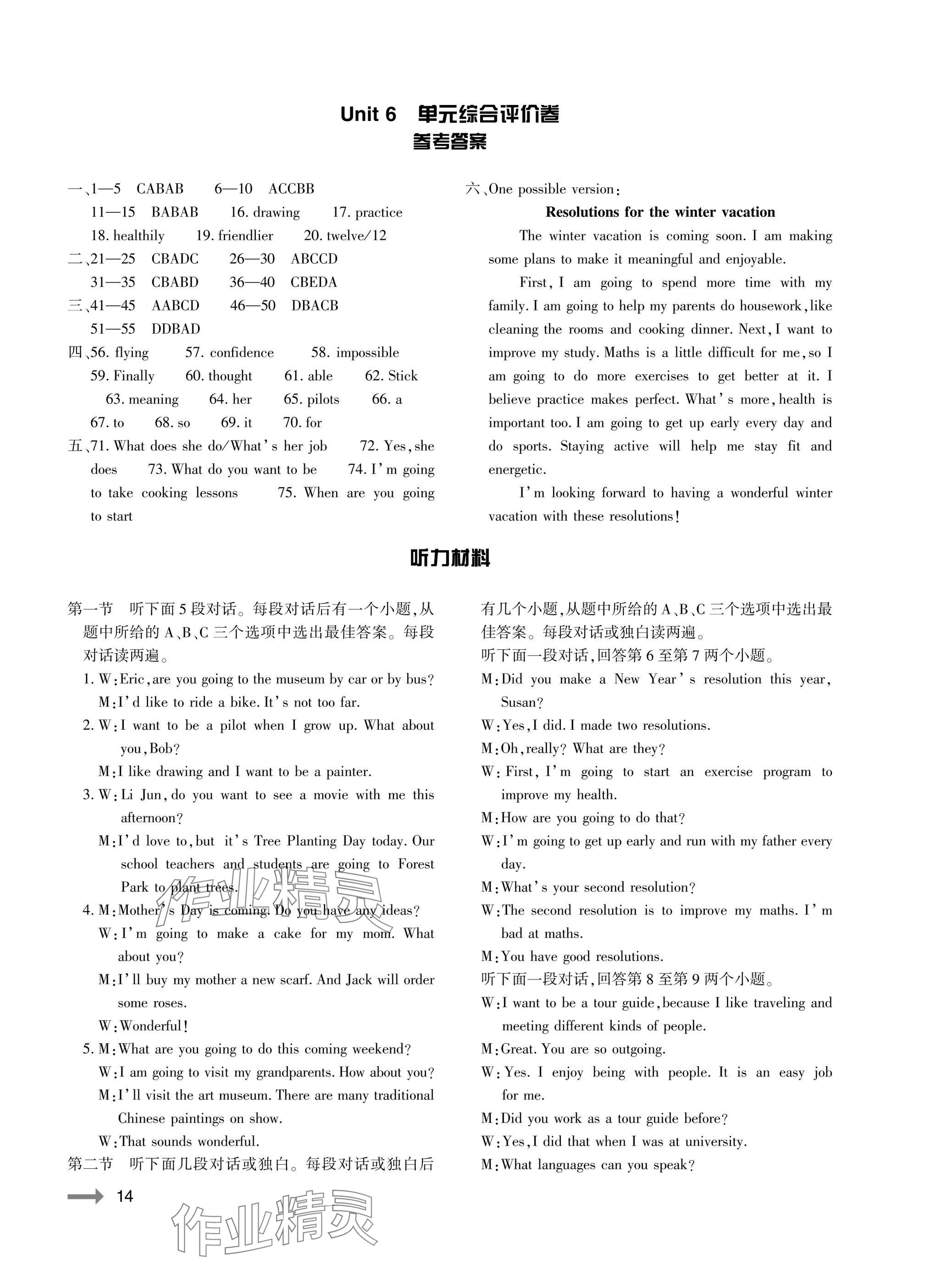 注:目前有些书本章节名称可能整理的还不是很完善,但都是按照顺序排列的,请同学们按照顺序仔细查找。练习册 2025年节节高大象出版社八年级英语上册人教版 答案主要是用来给同学们做完题方便对答案用的,请勿直接抄袭。