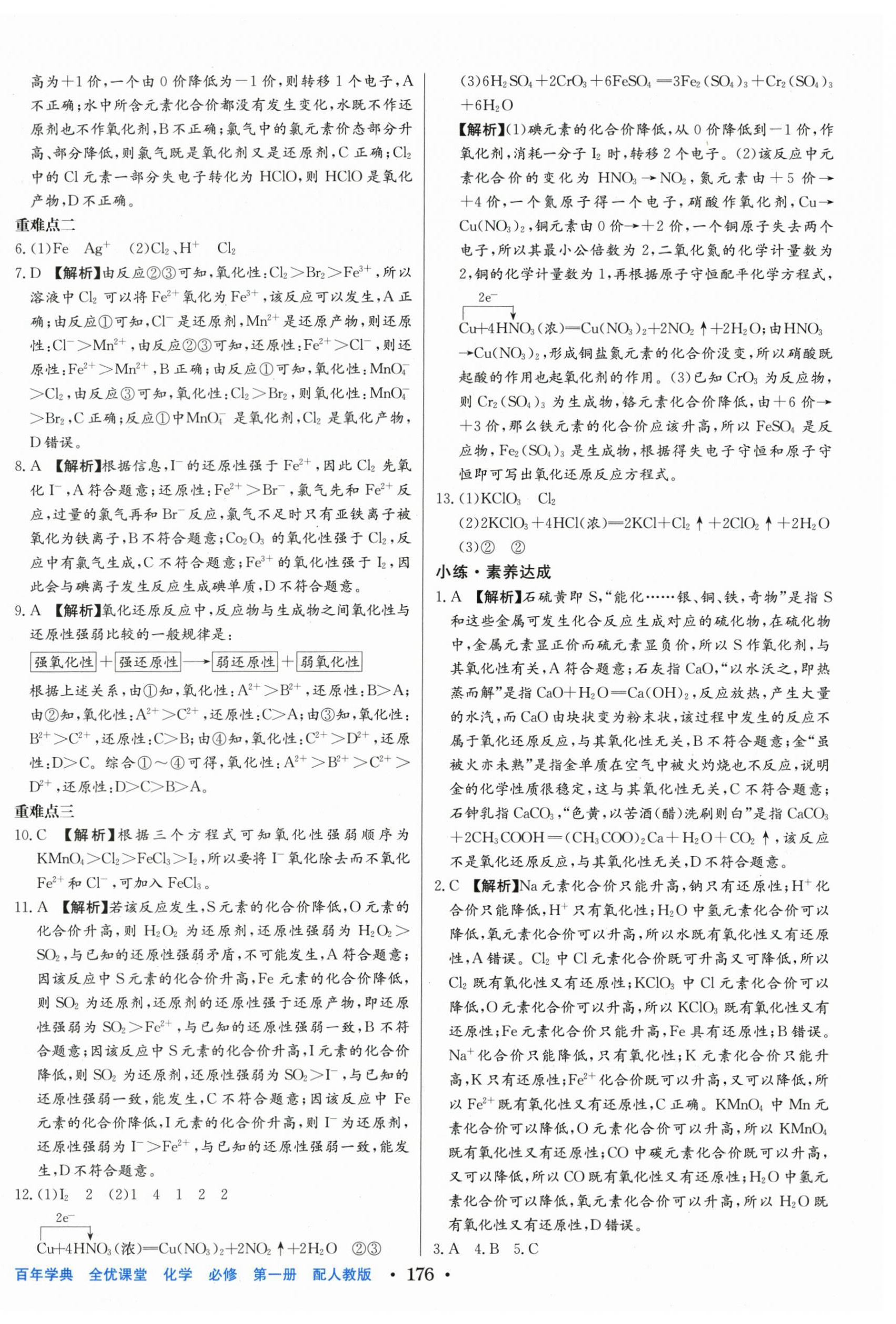 注:目前有些书本章节名称可能整理的还不是很完善,但都是按照顺序排列的,请同学们按照顺序仔细查找。练习册 2025年百年学典全优课堂高中化学必修第一册人教版 答案主要是用来给同学们做完题方便对答案用的,请勿直接抄袭。